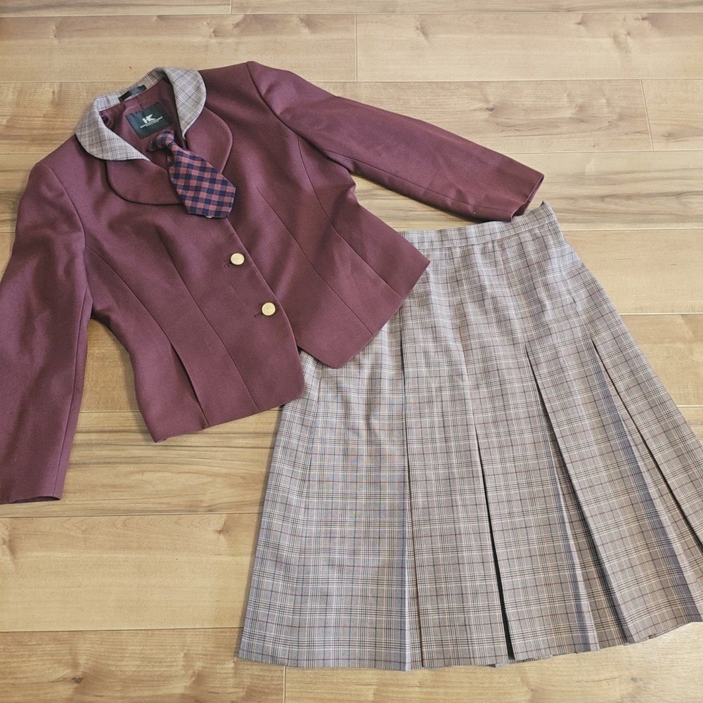 中古品となります。 ブレザー 着丈約56p/身幅約51p スカート 丈約64p/ウエスト約76p |