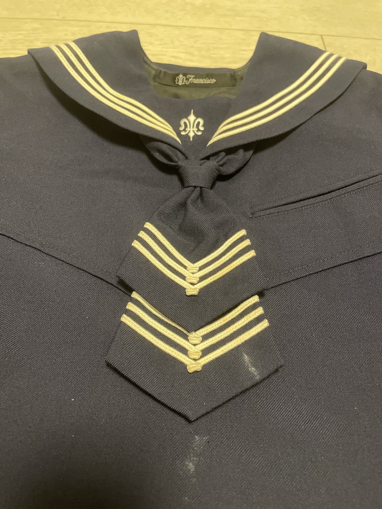 ◆5000円以上お買い上げで送料500円 ◆10000円以上お買い上げで送料無料 白百合学園 セーラー服 冬用 2点 メーカー:フランシスコ サイズ:着丈40-42 身幅40-42 色:紺 素材:表地毛100% 裏地ポリエステル100% 生産地:日本 状態:少し使用感汚れがあります。内タグにマジック跡があります。 ◇配送方法◇ ・ヤマト運輸宅急便900円(全国一律) 中古品を中心に出品しています。写真にない汚れ、ダメージ等もありますのでご理解のうえご入札お願いいたします。 品名「衣類」で発送いたします。時間指定ご希望の場合はご連絡ください。 ※入金確認後、基本即日または翌日発送いたします。 配送はヤマト運輸のみになります。基本折りたたんで配送します。同梱希望の場合、宅急便となります。同梱希望は連絡願います。落札後24時間以内に落札連絡いただけない場合は落札者都合でキャンセル削除させていただきますのでご了承ください。また落札後3日以内にお支払いをお願いいたします。遅れる場合は必ずご連絡お願いいたします。