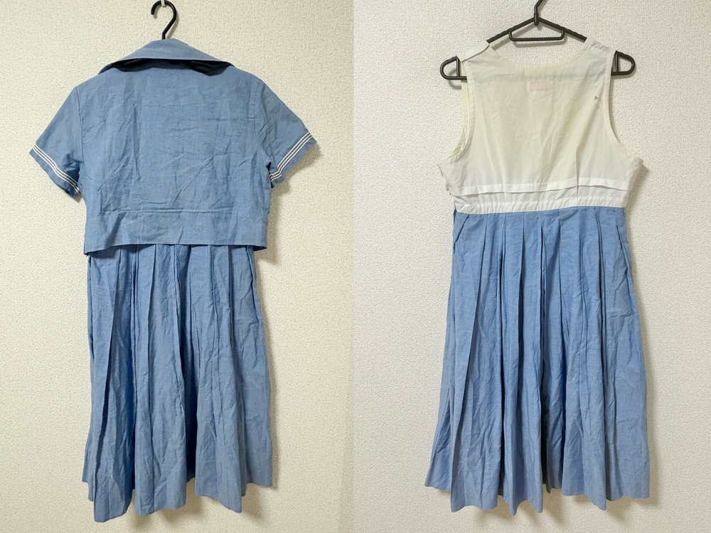 ◇◆出品内容◇◆ ・セーラー 肩幅39 身幅47 着丈40 袖丈18 ・ジャンパースカート(穴あり) 身幅47 ウエスト74 総丈97 ・黒スカーフ 以上3点です。 ※素人採寸のため、多少の誤差はご了承ください。 ◇◆状態◇◆