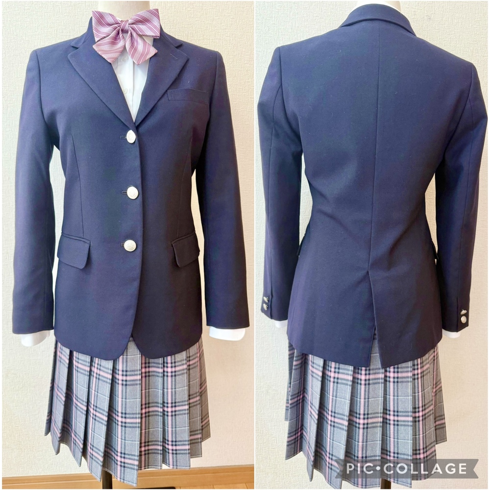 ※初めに※ こちらの商品に関しましては、直近3ヶ月以内に落札者都合によるキャンセルがある方の入札はご遠慮下さいm(_ _)m 新規の方は必ず購入意思の有無のコメントをお願い致します。 取引に不安がある方より入札があった場合、予告無く入札削除致しますのでご了承ください。 長くなり申し訳ございませんm(_ _)m 当方の仕事(不定休)の関係で入金確認に2、3日、発送に1週間くらいかかりますので、その点をご了承くださいm(_ _)m -----商品説明等----- クラーク国際記念高校 冬服 かなり綺麗な状態の制服一式です。 全て指定品です。 こちらのオーナーさまですが、新体操選手でして、新体操の為にクラークに進学したそうで、オーナーさまよりお預かりした新体操用品等をお預かりしており、別出品予定です。 どちらのクラークかは伏せて欲しいとの依頼で都道府県は伏せております。 全て平置きでの採寸になります。 身幅は2倍でお考えください。 素人の採寸ですので、多少の誤差はお許しくださいm(_ _)m 【ブレザー】 SR 着丈63.5cm 肩幅38cm 身幅45.5cm 袖丈59cm ブラックに近いダークネイビーのシングルボタンのブレザーです。 内側にピンクのステッチがあったりと、さり気ないオシャレがあります。 袖にテカリ少しあり。 こちらかなり綺麗です。 【ブラウス】 着丈63cm 肩幅38cm 身幅46cm 袖丈56.5cm ホワイトのブラウスです。 胸ポケット上にピンクの刺繍が施されています。 こちらは着用感があります。 首周り黄ばみ、袖口薄汚れ、染みあり。 【冬服スカート】 ウエスト29.5から33cm(アジャスターで調整可能) 着丈53.5cm(ベルト含む) タグにはウエスト63、丈51と記載あり。 グレー、ピンクチェックのかなり可愛いスカートです。 こちら着用感もあまりなくかなり綺麗です。 【リボン】 ピンク、レッドのストライプリボンです。 ゴム紐タイプです。 こちらもかなり綺麗です。 ※タグはありませんが、リボンも含めて全て業者クリーニング済み(6月中旬)ですので、そのまま保管、ご着用頂けます。 【発送】 ・ゆうパック80サイズ ※終了日当日の返答は出来かねますのでご了承下さい。 ご検討よろしくお願い致します(*^^*) お願いm(_ _)m 落札頂きましたら、24時間以内に取引開始をお願い致します。 諸事情により郵便局(ゆうパック等)での発送中心となります。 お振込みは送料通知より銀行営業日3日以内にお願い致します。 |