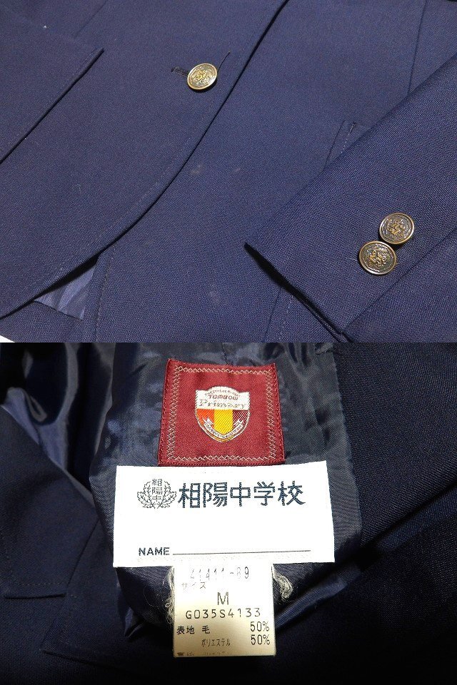 ★相模原市立相陽中学校 女子制服セット(ブレザー+スカート2種) ★内容、サイズは下記です。 ・ジャケット【M】、夏スカート【66-51】、冬スカート【63-63】 ★実際に計測したところ下記となります。 ★ジャケット:着丈65後62、肩幅39、身幅48、袖丈53 状態:着用感はそこそこあります。織ネームが入っております。 ★夏スカート :ウエスト63-64、総丈53.5 状態:着用感はそこそこあります。細かな汚れがあります。裾付近にリペア跡があります。 ★冬スカート :ウエスト61-63、総丈67 状態:着用感はそこそこあります。 ★ヤマト元払いにて発送します 。 |