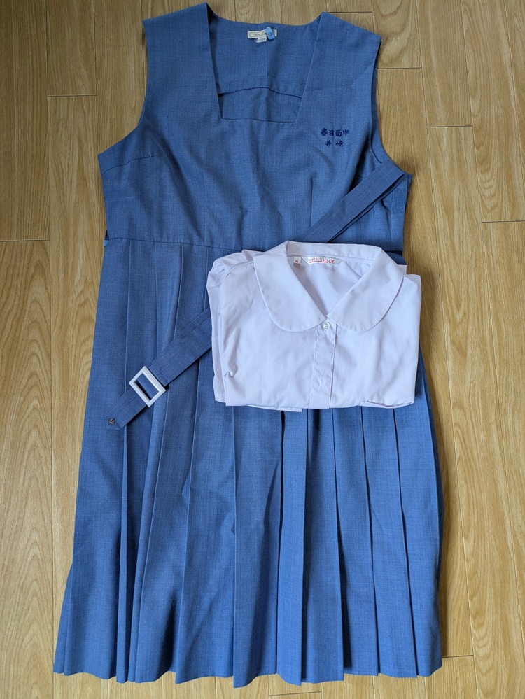夏用ジャンパースカート 総丈約99cm 脇下身幅片面 約53cm ウエスト片面約46cm ベルト長さ112cm ブラウスは半袖 |