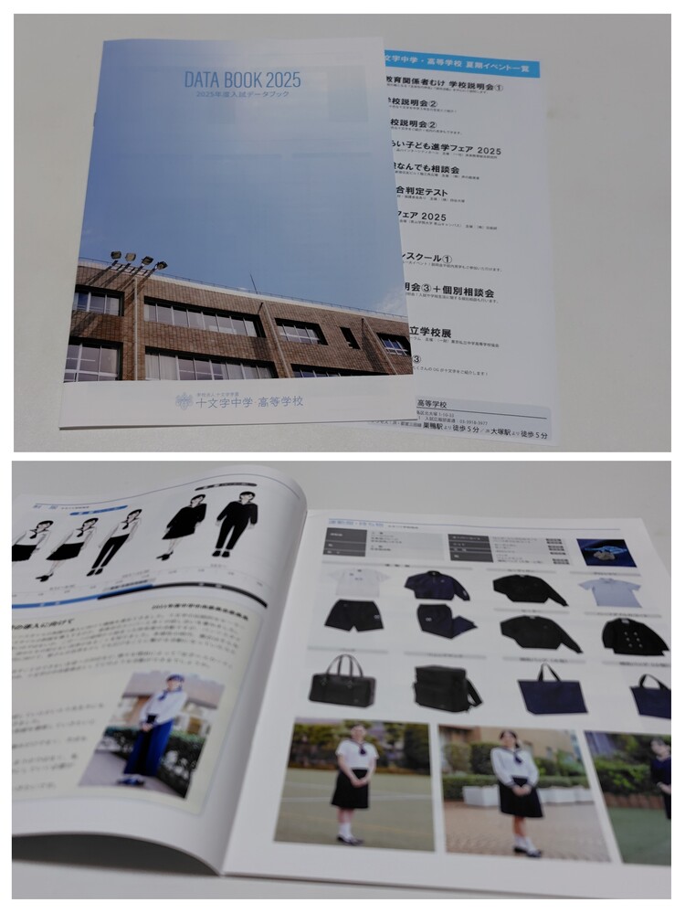 【お知らせ】 これから随時、来年度向けのパンフレットを新規出品させていただきます。 中には、限定のグッツもございます。 出品の終了日時は、毎週土曜日の夜9時です。 ぜひ、定期的にチェックしてみてくださいね。 −−−−−−−−−−−−−−−−−−−−−−−−−−−−−−−−−−−−−−−−−− 商品に興味をもっていただき、ありがとうございます。 以下をお読みいただき、入札をお待ちしています。 東京都の私立女子校 十文字中学高等学校の最新パンフレット(2026年度版) です。 十文字中学高等学校の制服は、伝統的なセーラー服が特徴です。 白を基調とした清潔感のあるデザインで、夏服は半袖と長袖から選択できます。 冬にはセーターやカーディガンを着用できます。 2023年度春からは、セーラー服にスラックスを合わせることも可能になり、生徒の選択肢が広がりました。 この学校からは、 竹下直子 - 第74代内閣総理大臣 竹下登夫人 坂井真紀 - 女優 YOU - タレント など、著名人が多数卒業しています。 パンフレットの内容 ・学校案内 1冊 ・『十 ノ アオハル』写真集 1冊 ・データブック 1冊 ・プリント 1枚 ○状態 新品 状態はとても綺麗です。 制服紹介、学校生活の掲載あります。 ○発送方法、送料について ・普通郵便 (140円〜750円,重さにより異なります。1sまで取り扱い可) ・ゆうメール (180円〜360円,重さにより異なります。1sまで取り扱い可) ※こちらは荷物の追跡はありません。 ・レターパックライト (430円) ・レターパックプラス (600円) ・ゆうパック (700円〜,梱包したサイズと地域により送料が異なります) ※荷物の追跡はあります。 ※落札点数が多い場合は、こちらはとても便利です。 ※ゆうパックは、持ち込み割引-120円を適用した料金です。 ※ゆうパックは、配達の日時指定できます。ご希望の場合はご連絡下さい。 ※郵便局留めできます。 その他、ご希望の発送方法(クロネコヤマト宅急便など)がありましたら 可能な限り承りますので、落札時にご連絡下さい。 〇落札連絡時のお願い 【落札連絡】時に、ご希望の発送方法をお知らせください。 送料をお調べして送料連絡します。 ※同梱可能です。 他の商品を複数落札された場合、同梱可能です。 落札時に【同梱の手続き】をしてご連絡下さい。 同梱することで落札者様の送料のご負担が減りますので、ぜひご利用ください。 気持ちの良いお取引を心がけていきます。 どうぞよろしくお願い致します。 ※評価が悪い人、または取引に不安になる方は入札、落札を取り消しします。 イタズラはやめてください。 ※新規の方は、コメント欄に【購入意思】をお知らせください。 ※現在、出品中のほかの商品はこちらのリンクから☆どうぞ見てくださいね! https://seifuku-ichiba.com/search.cgi?acc=sell_list&sid=1620050768 |