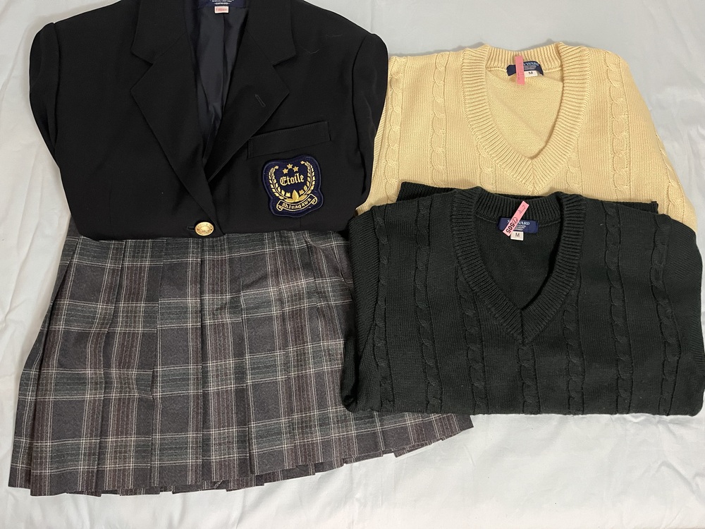 (注意)画像のブラウスは付きません。 東京都品川区にあります品川エトワール女子高等学校の冬用制服4点です。 ブレザー=サイズ155、マジックにて記名ありますが滲んでおり不鮮明です。 スカート=サイズ61-45、ブレザー同様マジックの記名は滲んでおり不鮮明です。 セーター=2点、いずれもMサイズ。 ヤマト便元払いにて発送予定です。 新規の方、良い評価が85%未満の方は、必ず入札前に落札時の購入を確約する旨コメント欄に記載して下さい。 新規の方の終了間際の入札は不可とします。 ​​​​​​​宜しくお願いいたします。 |
