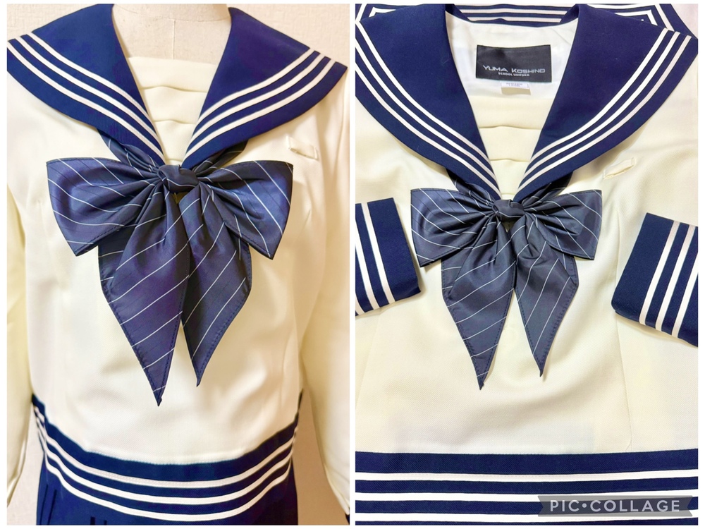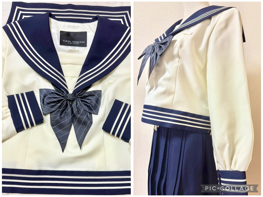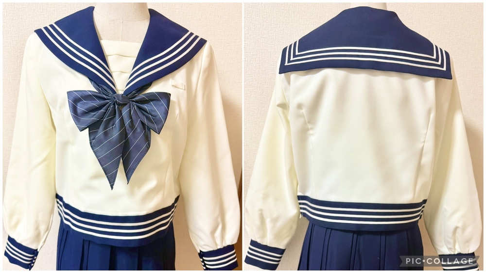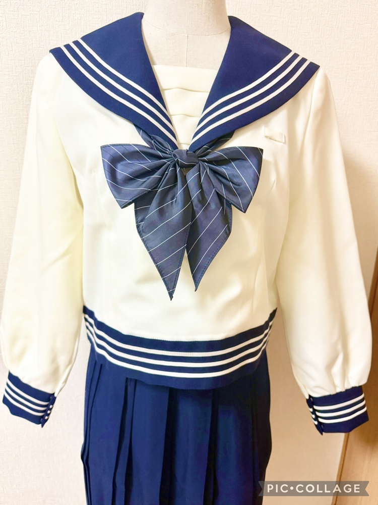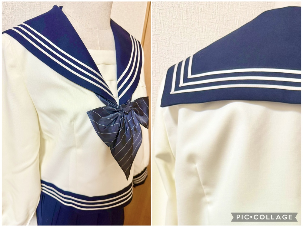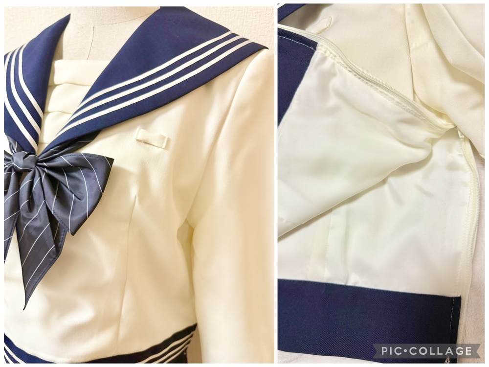 ※初めに※ こちらの商品に関しましては、直近3ヶ月以内に落札者都合によるキャンセルがある方の入札はご遠慮下さいm(_ _)m 新規の方は必ず購入意思の有無のコメントをお願い致します。 取引に不安がある方より入札があった場合、予告無く入札削除致しますのでご了承ください。 長くなり申し訳ございませんm(_ _)m 当方の仕事(不定休)の関係で入金確認に2、3日、発送に1週間くらいかかりますので、その点をご了承くださいm(_ _)m -----商品説明等----- 東京都 原宿外苑中学校 冬服セーラー 指定リボン クリーム色の可愛いくて珍しいデザインのセーラー服です。 採寸は全て平置きでの採寸となります。 身幅はかける2プラスアルファが実寸サイズとなります。 素人採寸ですので、多少の誤差はお許しください。 【冬服セーラー】 165B 着丈46.5cm 肩幅41.5cm 身幅53.5cm 裾47cm 袖丈58.5cm 原宿外苑中学のセーラー服です。 受験用に購入していたそうですが、未着用との事です。 今まで3人より新品の制服をお預かりし、皆さんサイズアウトしたとの事だった為、お話を詳しく聞いたところ、身幅が細身である事、ウエストの切り替えが絞られているので、成長期の子には短期間で苦しくなるそうで、その為新品未着用のまま保管となったそうです。 YUMA KOSHINOデザインで、胸当て、セーラー服のボディ裾までデザインが凝っており、かなり素敵です。 ラインもホワイトよりもベージュっぽい可愛いお色です。 こちらオーナーさまの試着も無しとの事です。 胸当て内側に裏地はありません。 保管による初期シワがあります。 【リボン】 ブラックのストライプリボンです。 撮影用に袋から出してます。 こちらも新品未使用です。 今までの冬とリボンの落札価格より低めに出品致します。 ※参考までに冬服セーラー単品約19万、リボン4から5万で落札されております。 ※こちら原宿外苑の化粧箱も御座います。 化粧箱発送ご希望の場合、落札後に化粧箱発送希望の旨をお伝えください。 サイズは120サイズになります。 発送 ・ゆうパック80サイズ ・化粧箱付き発送120サイズ 出品終了直前や、出品終了当日の返事は出来ませんのでご了承下さい。 落札頂きましたら、必ずご希望の発送方法のご連絡をお願い致します。 ※終了日当日の返答は出来かねますのでご了承下さい。 ご検討よろしくお願い致します(*^^*) お願いm(_ _)m 落札頂きましたら、24時間以内に取引開始をお願い致します。 諸事情により郵便局(ゆうパック等)での発送中心となります。 お振込みは送料通知より銀行営業日3日以内にお願い致します。 |