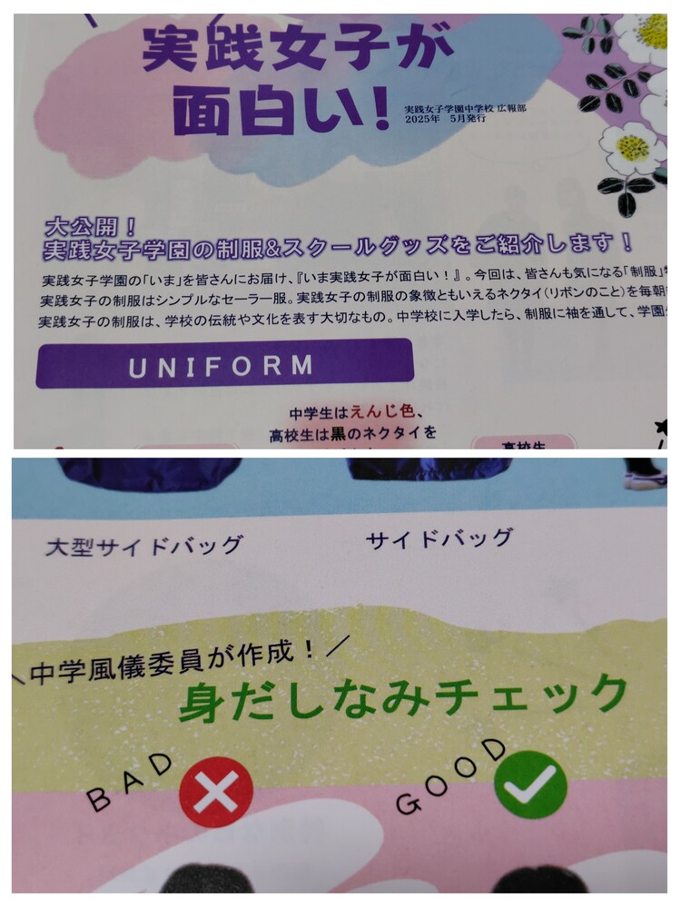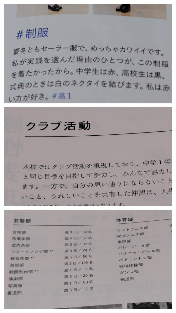 【お知らせ】※スマホでご覧の方は「Read More」を押すと商品説明が全文表示されます。 これから随時、来年度向けのパンフレットを新規出品させていただきます。 中には、限定のグッツもございます。 出品の終了日時は、毎週土曜日の夜9時です。 ぜひ、定期的にチェックしてみてくださいね。 ※現在出品中の商品は商品説明欄の一番下にリンクを張ってありますので、そこからご覧ください。 −−−−−−−−−−−−−−−−−−−−−−−−−−−−−−−−−−−−−−−−−− 商品に興味をもっていただき、ありがとうございます。 以下をお読みいただき、入札をお待ちしています。 東京都の私立女子校 実践女子学園中学高等学校の最新パンフレット(2026年度版) です。 実践女子学園中学校・高等学校の制服は、伝統的なセーラー服で、中学生は臙脂色のネクタイ、高校生は黒色のネクタイを着用します。 夏服は白いセーラーブラウスで、涼しく透けにくいピケ生地が使われています。 夏用のセーターがあるなど、女子校らしい、きめ細かい工夫がされています。 制服には「堅実にして質素、しかも品格ある女性」という精神が込められています。 パンフレットの内容 ・学校案内 1冊 ・学校案内 別紙 1部 ・「いま実践女子が面白い」 1部 ・プリント 1枚 実践女子学園中学高等学校の出身として ・うつみ宮土理 (タレント) ・真琴つばさ (元宝塚歌劇団月組トップスター、歌手、女優) ほか、多くの芸能人や著名人がいます。 ○状態 新品 状態はとても綺麗です。 制服紹介、部活動紹介の掲載あります。 ○発送方法、送料について ・普通郵便 (140円〜750円,重さにより異なります。1sまで取り扱い可) ・ゆうメール (180円〜360円,重さにより異なります。1sまで取り扱い可) ※こちらは荷物の追跡はありません。 ・レターパックライト (430円) ・レターパックプラス (600円) ・ゆうパック (700円〜,梱包したサイズと地域により送料が異なります) ※荷物の追跡はあります。 ※落札点数が多い場合は、こちらはとても便利です。 ※ゆうパックは、持ち込み割引-120円を適用した料金です。 ※ゆうパックは、配達の日時指定できます。ご希望の場合はご連絡下さい。 ※郵便局留めできます。 その他、ご希望の発送方法(クロネコヤマト宅急便など)がありましたら 可能な限り承りますので、落札時にご連絡下さい。 〇落札連絡時のお願い 【落札連絡】時に、ご希望の発送方法をお知らせください。 送料をお調べして送料連絡します。 ※同梱可能です。 他の商品を複数落札された場合、同梱可能です。 落札時に【同梱の手続き】をしてご連絡下さい。 同梱することで落札者様の送料のご負担が減りますので、ぜひご利用ください。 気持ちの良いお取引を心がけていきます。 どうぞよろしくお願い致します。 ※評価が悪い人、または取引に不安になる方は入札、落札を取り消しします。 イタズラはやめてください。 ※新規の方は、コメント欄に【購入意思】をお知らせください。 ※現在、出品中のほかの商品はこちらのリンクから☆どうぞ見てくださいね! https://seifuku-ichiba.com/search.cgi?acc=sell_list&sid=1620050768 |