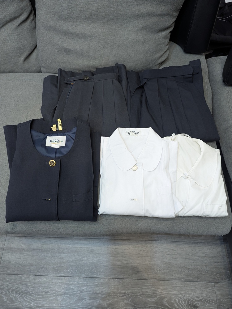 ご覧いただきありがとうございます。吉原一中女子旧イートンジャケット、夏冬スカート、夏冬ブラウスの出品になります。 リボンは撮影用に市販の汎用品を合わせた参考画像用ですので付属いたしませんが、必要でしたら取引連絡時にお伝え下さい。状態は、ブラウスの襟袖黄ばみ、汚れ、スカートの畳みじわがあります。目立つ破れやほつれは見当たりません。 サイズ イートンジャケット 170A 夏冬スカート 69-62 夏ブラウス 165A 長袖ブラウス L表記 ご検討よろしくお願いします。 |