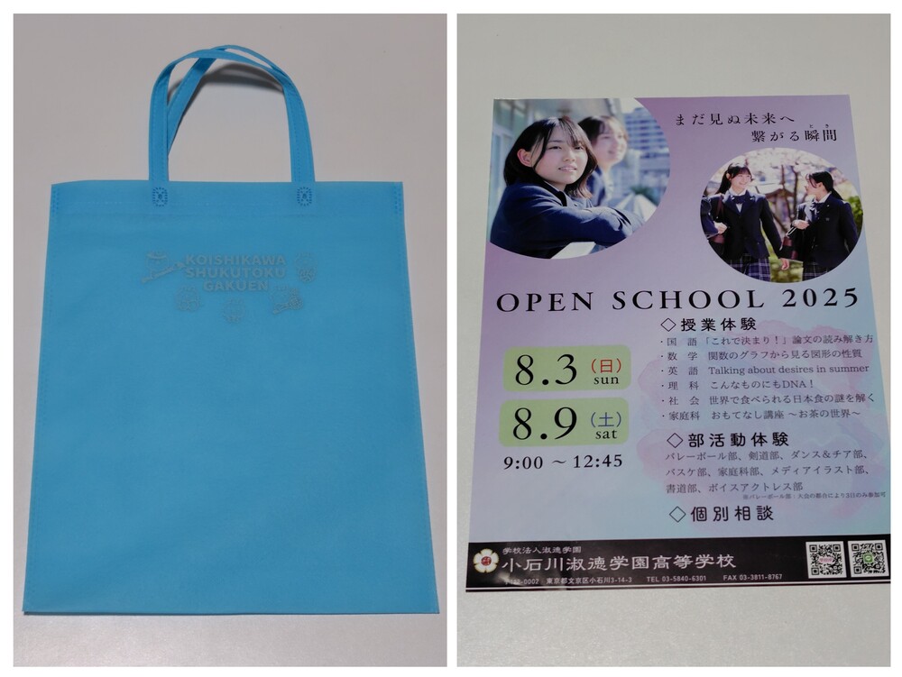 ※スマホでご覧の方は「Read More」を押すと商品説明が全文表示されます。 【お知らせ】※スマホでご覧の方は「Read More」を押すと商品説明が全文表示されます。 これから随時、来年度向けのパンフレットを新規出品させていただきます。 中には、限定のグッツもございます。 出品の終了日時は、毎週土曜日の夜9時です。 ぜひ、定期的にチェックしてみてくださいね。 ※現在出品中の商品はコチラ↓ https://seifuku-ichiba.com/search.cgi?acc=sell_list&sid=1620050768 ※商品説明欄の一番下にも現在出品中の商品リンクを張ってありますので、そこからもご覧いただけます。 −−−−−−−−−−−−−−−−−−−−−−−−−−−−−−−−−−−−−−−−−− 商品に興味をもっていただき、ありがとうございます。 以下をお読みいただき、入札をお待ちしています。 東京都の私立女子校 小石川淑徳学園高等学校の最新パンフレット(2026年度版) 学校指定の手提げバック付き です。 小石川淑徳学園高等学校の制服は、学園の花「なでしこ」をイメージした上品なデザインが特徴です。 ダークグレーのジャケットにピンク・グレー・白を配したタータンチェックのスカートを合わせます。 リボンや小物(ブラウス、セーター、ベスト、靴下)の色を自由に選べるため、生徒は個性を表現することができます。 特に、左羽部分に刺繍されたなでしこの花が印象的で、靴下にも同様の刺繍が施されています。 パンフレットの内容 ・学校案内 1部 ・学校指定の不織布手提げバック(ブルー) 1枚 【限定品】新品です ・学校指定の不織布手提げバッグ ※ブルー色 たて35センチ,よこ28センチ,マチなし とって30センチ ○状態 新品 状態はとても綺麗です。 制服紹介、部活動紹介の掲載あります。 ○発送方法、送料について ・レターパックライト (430円) ・レターパックプラス (600円) ※こちらは不織布バッグを折りたたんでの梱包となります。 製品の性質上、おすすめしません。 送料を抑えたい方はレターパックをどうぞ。 ・ゆうパック (700円〜,梱包したサイズと地域により送料が異なります) ※60サイズを予定しております。 ※荷物の追跡はあります。 ※落札点数が多い場合は、こちらはとても便利です。 ※ゆうパックは、持ち込み割引-120円を適用した料金です。 ※ゆうパックは、配達の日時指定できます。ご希望の場合はご連絡下さい。 ※郵便局留めできます。 その他、ご希望の発送方法(クロネコヤマト宅急便など)がありましたら 可能な限り承りますので、落札時にご連絡下さい。 〇落札連絡時のお願い 【落札連絡】時に、ご希望の発送方法をお知らせください。 送料をお調べして送料連絡します。 ※同梱可能です。 他の商品を複数落札された場合、同梱可能です。 落札時に【同梱の手続き】をしてご連絡下さい。 同梱することで落札者様の送料のご負担が減りますので、ぜひご利用ください。 気持ちの良いお取引を心がけていきます。 どうぞよろしくお願い致します。 ※評価が悪い人、または取引に不安になる方は入札、落札を取り消しします。 イタズラはやめてください。 ※新規の方は、コメント欄に【購入意思】をお知らせください。 ※現在、出品中のほかの商品はこちらのリンクから☆どうぞ見てくださいね! https://seifuku-ichiba.com/search.cgi?acc=sell_list&sid=1620050768 |