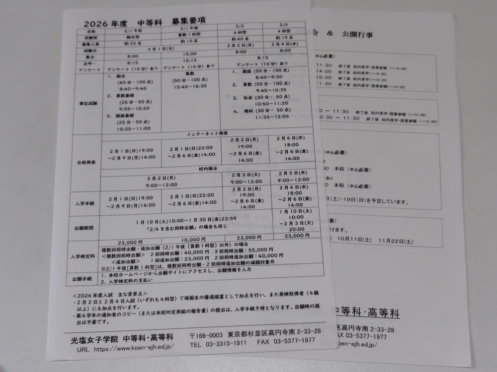 ※スマホでご覧の方は「Read More」を押すと商品説明が全文表示されます。 【お知らせ】※スマホでご覧の方は「Read More」を押すと商品説明が全文表示されます。 これから随時、来年度向けのパンフレットを新規出品させていただきます。 中には、限定のグッツもございます。 出品の終了日時は、毎週土曜日の夜9時です。 ぜひ、定期的にチェックしてみてくださいね。 ※現在出品中の商品はコチラ↓ https://seifuku-ichiba.com/search.cgi?acc=sell_list&sid=1620050768 ※商品説明欄の一番下にも現在出品中の商品リンクを張ってありますので、そこからもご覧いただけます。 −−−−−−−−−−−−−−−−−−−−−−−−−−−−−−−−−−−−−−−−−− 商品に興味をもっていただき、ありがとうございます。 以下をお読みいただき、入札をお待ちしています。 東京都の私立女子校 【夏季限定・うちわ付き】光塩女子学園 中等科・高等科の最新パンフレット(2026年度版) です。 光塩女子学院中等科・高等科の制服は、冬服はジャンパースカートにセーターやブレザーを着用し、夏服は気温に合わせてベストやセーターを組み合わせます。 特徴的なのは、紺とシルバーグレーのストライプ柄のネクタイです。 シャツは生地の厚さや袖のデザインにこだわり、1枚でも着られるように工夫されています。 夏服は2021年度に生徒主導でリニューアルされ、ベストがグレーと紺の2色から選べるようになりました。 パンフレットの内容 ・学校案内 1冊 ・2026年度 中等科 募集要項 1枚 ・プリント 1枚 ・うちわ 1枚 【夏季限定品】新品です ・うちわ ※直径20.5センチ 円形型 ○状態 新品 状態はとても綺麗です。 制服写真、部活動紹介の掲載あります。 ○発送方法、送料について ・普通郵便 (140円〜750円,重さにより異なります。1sまで取り扱い可) ・ゆうメール (180円〜360円,重さにより異なります。1sまで取り扱い可) ※こちらは荷物の追跡はありません。 ・レターパックライト (430円) ・レターパックプラス (600円) ・ゆうパック (700円〜,梱包したサイズと地域により送料が異なります) ※荷物の追跡はあります。 ※落札点数が多い場合は、こちらはとても便利です。 ※ゆうパックは、持ち込み割引-120円を適用した料金です。 ※ゆうパックは、配達の日時指定できます。ご希望の場合はご連絡下さい。 ※郵便局留めできます。 その他、ご希望の発送方法(クロネコヤマト宅急便など)がありましたら 可能な限り承りますので、落札時にご連絡下さい。 〇落札連絡時のお願い 【落札連絡】時に、ご希望の発送方法をお知らせください。 送料をお調べして送料連絡します。 ※同梱可能です。 他の商品を複数落札された場合、同梱可能です。 落札時に【同梱の手続き】をしてご連絡下さい。 同梱することで落札者様の送料のご負担が減りますので、ぜひご利用ください。 気持ちの良いお取引を心がけていきます。 どうぞよろしくお願い致します。 ※評価が悪い人、または取引に不安になる方は入札、落札を取り消しします。 イタズラはやめてください。 ※新規の方は、コメント欄に【購入意思】をお知らせください。 ※現在、出品中のほかの商品はこちらのリンクから☆どうぞ見てくださいね! https://seifuku-ichiba.com/search.cgi?acc=sell_list&sid=1620050768 |