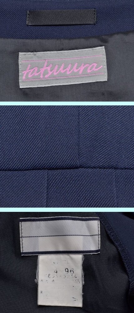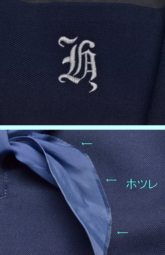 ▲fss-5347 平尾中学校(旧、冬服)▲ ■■商品説明■■ ●セーラー服:肩幅40cm位 着丈42cm位 胸周96cm位 袖丈58cm位 ●ジャンバースカート:ウエスト78cm位 スカート丈50cm位 胸周88cm位 総丈87cm位 24本前箱プリーツ ●ベルト: ●スカーフ: ◎生地 セーラー服【表地】ポリエステル50%毛50%【裏地】ポリエステル100% スカート【表地】ポリエステル50%毛50%【裏地】ポリエステル100%(上身部分) ◎メーカー セーラー服:タツウラ スカート:タツウラ ◎開き セーラー服:左ファスナー開 スカート:左スナップボタン(上身部分)左ファスナー(スカート部分)開 ◎その他 画像スカーフにホツレあり(画像参照) ◎所在:福岡市中央区 ■■発送について■■ ◇以下はお休みさせて頂きます。予めご了承下さい。 『土、日、祝祭日、8月12日〜16日 12月30日〜1月4日』 ◇基本、ヤマト運輸での発送です。 ■■注意事項■■ ◇気づいた点は記入するようしていますが、見落としで、ホックボタン不足、ホツレ、虫食い、シミ、その他欠陥がある場合があります。 ◇スカートの裏側に小さなシミ等があっても表からは見えませんので、基本的に記載は致しません。 ◇汚れの酷い場合や広範囲にある場合は裏側でも記載致します。気になる場合は入札前にご質問下さい。 (ポケットや裏地の破れは記載致します) ◇出品商品は中古品なので、新品のような完璧な商品をお探しの方は、入札をご遠慮頂き、ご理解下さる方のみ入札をお願い致します。 ◇サイズは一部を除き実寸です。素人が採寸しておりますので、多少の誤差はお許し下さい。 ◇スカート丈はウエストベルトを除いた部分を計測しております。(一部を除く) ◇制服は新品以外は全てドライ用洗濯済(毛100についてはドライクリーニング済)です。 ◇ノークレームでお願いします。 ◇評価に多数のマイナスがある方は入札を取り消させて頂く場合があります。 ◇保管場所の都合により質問の回答にはお時間を頂きますので、お早目にお願いします。 ◇他でも同商品を販売しております。場合によっては出品中でも取消が間に合わずに在庫が無い事があります。 ◇出品商品は、公開画像以外にも画像を残しております。 ◇その他、ご質問があればお気軽にどうぞ!! |