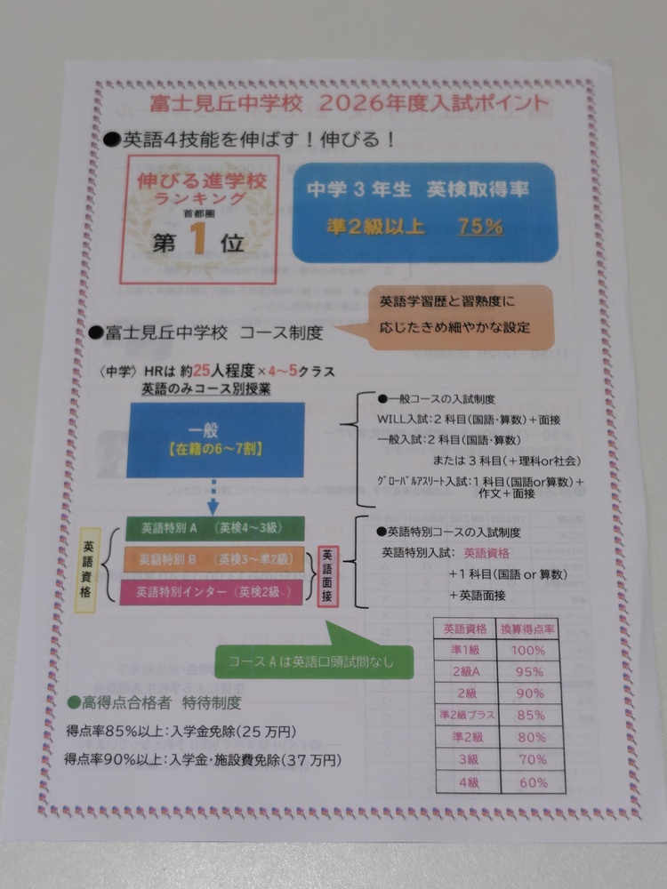 ※スマホでご覧の方は「Read More」を押すと商品説明が全文表示されます。 【お知らせ】 これから随時、来年度向けのパンフレットを新規出品させていただきます。 中には、限定のグッツもございます。 出品の終了日時は、毎週土曜日の夜9時です。 ぜひ、定期的にチェックしてみてくださいね。 ※現在出品中の商品はコチラ https://seifuku-ichiba.com/search.cgi?acc=sell_list&sid=1620050768 ※商品説明欄の一番下にも現在出品中の商品リンクを張ってありますので、そこからもご覧いただけます。 −−−−−−−−−−−−−−−−−−−−−−−−−−−−−−−−−−−−−−−−−− 商品に興味をもっていただき、ありがとうございます。 以下をお読みいただき、入札をお待ちしています。 東京都の私立女子校 富士見丘中学高等学校の最新パンフレット[Introduction Guide](2026年度版) です。 富士見丘中学高等学校の制服の特徴は、2018年度からブリティッシュ・トラッドを意識したデザインに刷新されたことで、冬服はチャコールグレーのジャケットにワインカラーのセーターとタータンチェックのスカートを、夏服は白のオーバーブラウスとタータンチェック柄(色反転)のオールプリーツスカートを着用します。 中高でリボンやボタンの色が異なり、高校では金色ボタンと濃いグレーのリボン、中学では紺色のリボンなどが採用されます。 富士見丘中学校・高等学校出身の芸能人には、 女優の片瀬那奈さん タレントの東尾理子さん(中学校のみ) などがいます。 パンフレットの内容 ・学校案内 1冊 ・プリント 1枚 ○状態 新品 状態はとても綺麗です。 制服写真、部活動紹介の掲載あります。 ○発送方法、送料について ・普通郵便 (140円〜750円,重さにより異なります。1sまで取り扱い可) ・ゆうメール (180円〜360円,重さにより異なります。1sまで取り扱い可) ※こちらは荷物の追跡はありません。 ・レターパックライト (430円) ・レターパックプラス (600円) ・ゆうパック (700円〜,梱包したサイズと地域により送料が異なります) ※荷物の追跡はあります。 ※落札点数が多い場合は、こちらはとても便利です。 ※ゆうパックは、持ち込み割引-120円を適用した料金です。 ※ゆうパックは、配達の日時指定できます。ご希望の場合はご連絡下さい。 ※郵便局留めできます。 その他、ご希望の発送方法(クロネコヤマト宅急便など)がありましたら 可能な限り承りますので、落札時にご連絡下さい。 〇落札連絡時のお願い 【落札連絡】時に、ご希望の発送方法をお知らせください。 送料をお調べして送料連絡します。 ※同梱可能です。 他の商品を複数落札された場合、同梱可能です。 落札時に【同梱の手続き】をしてご連絡下さい。 同梱することで落札者様の送料のご負担が減りますので、ぜひご利用ください。 気持ちの良いお取引を心がけていきます。 どうぞよろしくお願い致します。 ※評価が悪い人、または取引に不安になる方は入札、落札を取り消しします。 イタズラはやめてください。 ※新規の方は、コメント欄に【購入意思】をひとことお知らせください。 ※現在、出品中のほかの商品はこちらのリンクから☆どうぞ見てくださいね! https://seifuku-ichiba.com/search.cgi?acc=sell_list&sid=1620050768 |