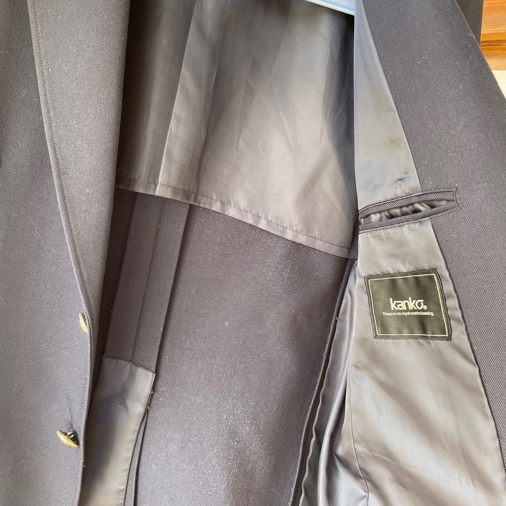 KANKO 濃紺ブレザー 165A 中古品です。比較的綺麗な状態です。 男子用です。 165Aサイズです。 シングルの2つボタン センターベント ブレザーの色は濃紺色です。 身長165cm 標準体型 |