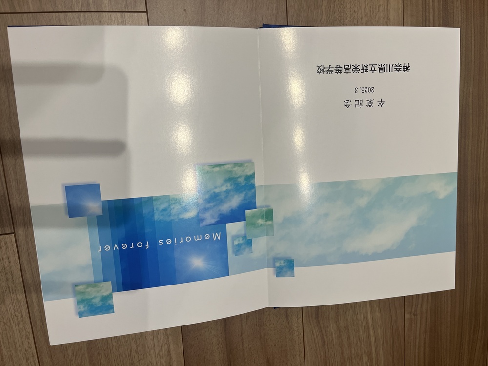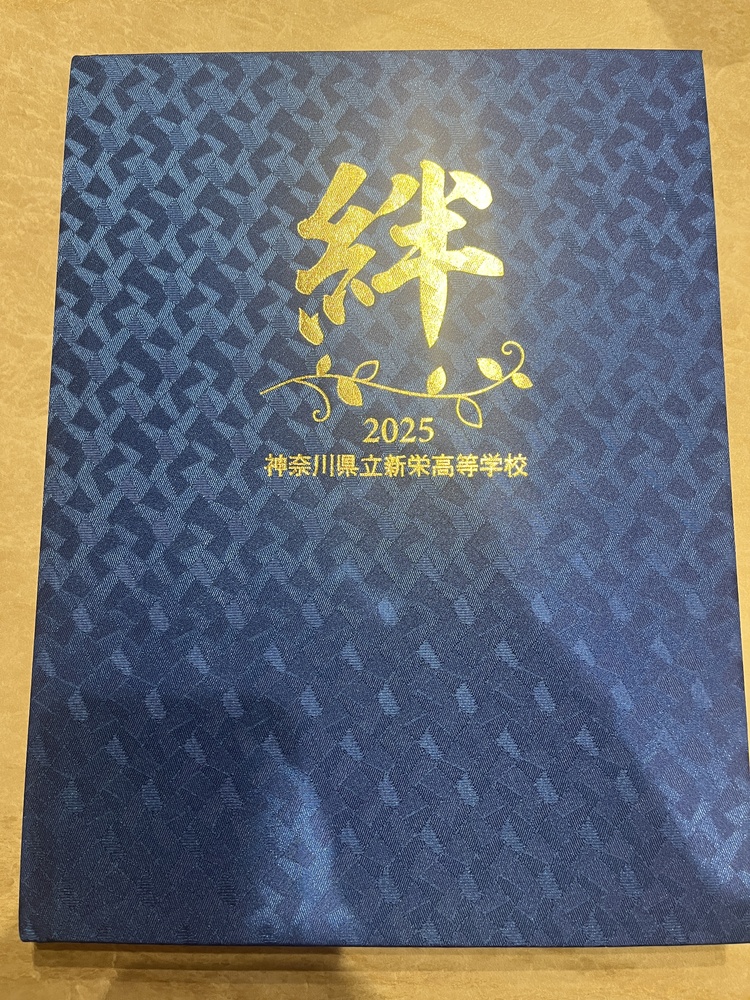 神奈川原新栄高校の卒業アルバムになります。大きな汚れはないです。 約60ページくらいのアルバムです。 2025年で、青いスカートの制服のアルバムです |