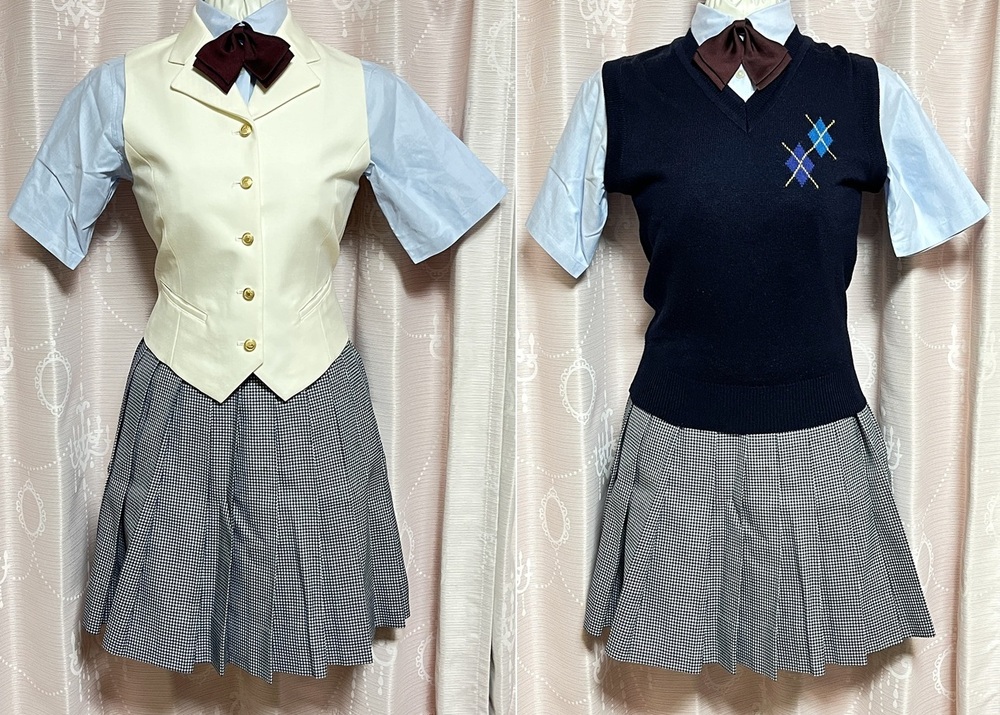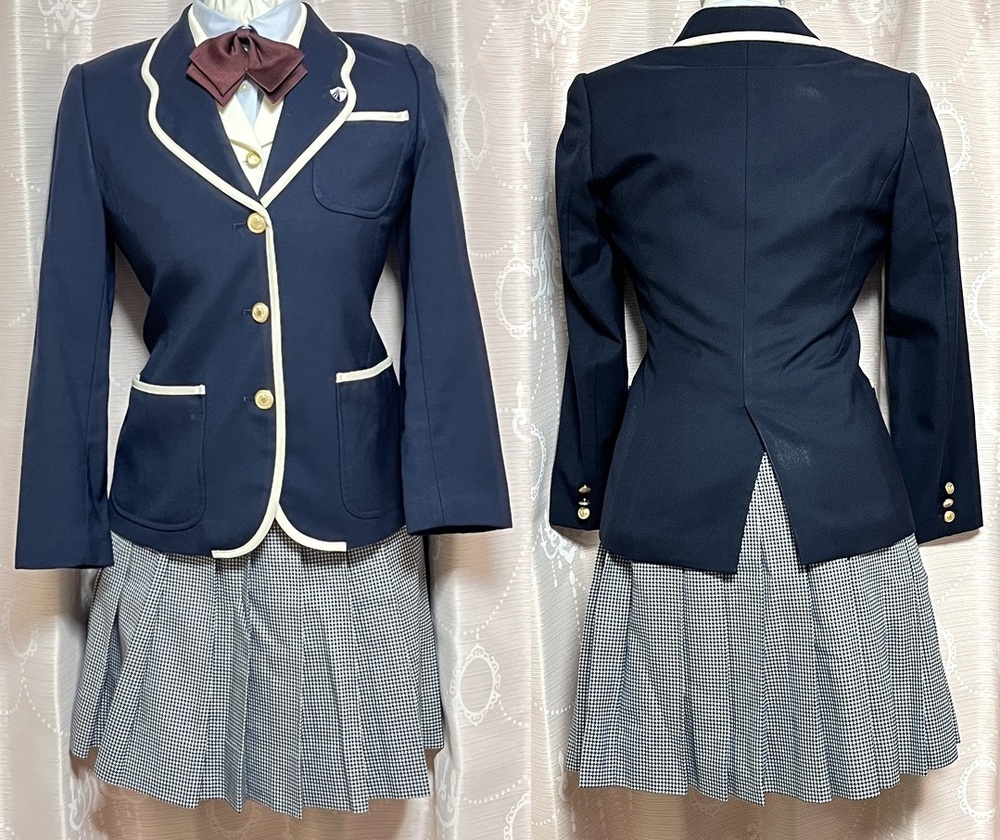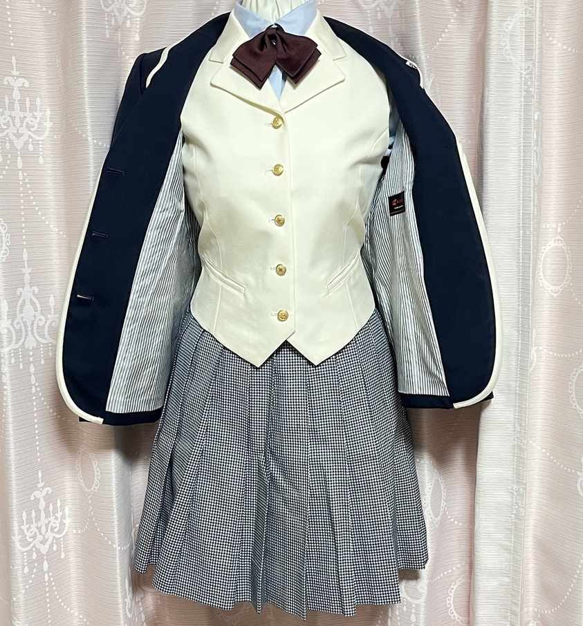 神奈川県 聖セシリア女子中学校・高等学校 制服7点セットです。 中学生と高校生は同じ制服ですが、リボンの色は中学生のエンジです。 全て指定品となります。 商品内容 @ブレザー 表示:KANKO サイズSS 実測:肩幅35cm、身幅43cm、袖丈53cm、着丈60cm Aスカート 表示:KANKO ウエスト60、丈54 実測:ウエスト28〜31cm、丈49cm Bブラウス(半袖) 表示:KANKO サイズS 実測:肩幅39cm、身幅45cm、袖丈23cm、着丈62cm Cベスト(白) 表示:KANKO サイズSS 実測:身幅42cm、着丈48cm Dニットベスト 表示:サイズM、菅公 実測:身幅44cm、着丈57cm Eリボン ハネクトーン F校章バッチ 状態は良く美品です。 発送時に畳シワが出るかもしれませんので、完璧な物をお求めの 場合はご遠慮ください。 また見落としや、採寸についての誤差が生じる場合があります。 匿名配送をご希望の場合は落札後、その旨ご連絡をお願いします。 |