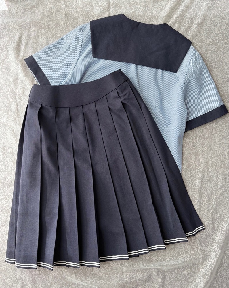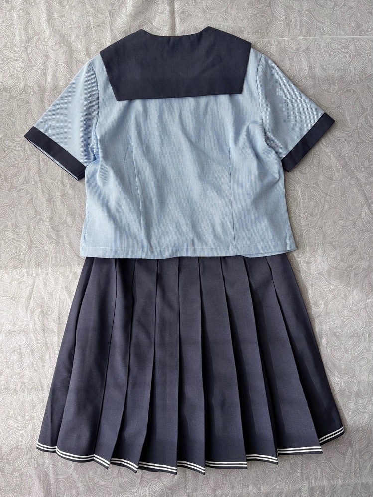 岡山県にある創志学園高等学校の夏セーラー服セットになります 冬制服セットも同時出品中です セーラー服 13 肩幅 40 着丈 54 スカート W. 60 - 66 総丈 57 セーラーは水色の細かいストライプ柄の素材でできており、ボタンも水色と涼しげな色合い 襟と袖はセーラーと同素材で統一感あります スカートは濃紺と濃いグレーの中間色で、裾には2本のラインが入っておりオシャレでカワイイ印象をあたえてくれます ウエストはカーブベルトで最近の制服らしい造りで、実測より少し大きめの方なら着用いただけるのがカーブベルトのいいところです 状態はかなりの美品で、目立った黄ばみや汚れやホツレなどございません タグご覧になればお分かりになるかと思います 匿名取引・局留め・営業所止めも可能です 梱包と伝票品名に配慮してお送り致します 他制服出品のと同梱発送できます クレジットカード決算可能です 支払い情報をご確認ください 注意 新規と悪い評価2件以上の方 質問欄へキャンセルしないお約束文をコメント入れて入札願います 過去にトラブルも多くあったので場合によっては削除する事もあります それ以外の方は問題ごさいません あと、 入札してからの辞退はご遠慮ください。 次点落札者とトラブルの元になるので、よく考えて冷静に入札してくださいますよう、宜しくお願い致します。 |