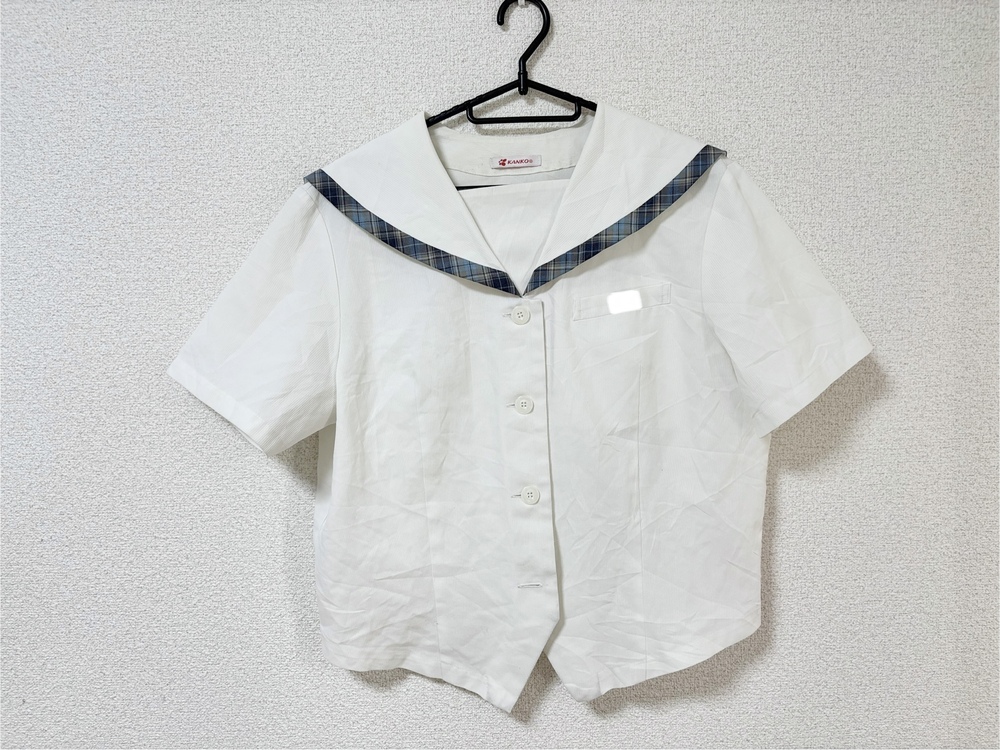 ◇◆出品内容◇◆ ・セーラーシャツ 肩幅43 身幅53 着丈48 袖丈22 以上1点です。 ※素人採寸のため、多少の誤差はご了承ください。 ◇◆状態◇◆