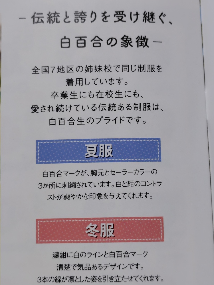※スマホでご覧の方は「Read More」を押すと商品説明が全文表示されます。 【お知らせ】 これから随時、来年度向けのパンフレットを新規出品させていただきます。 中には、限定のグッズもございます。 《セーラー祭り 始まりました!!》 セーラー服のパンフレットを毎週出品。 第1週目のおすすめは『白百合』シリーズです。 ほか、『女子校御三家』も注目です。(雙葉,桜陰,女子学院) 多数の人気セーラーも注目です。(成女,常盤木,武蔵越生)など 2週目のおすすめもお楽しみに☆ 出品の終了日時は、毎週土曜日の夜9時です。 ぜひ、定期的にチェックしてみてくださいね。 ※現在出品中の商品はコチラ https://seifuku-ichiba.com/search.cgi?acc=sell_list&sid=1620050768 ※商品説明欄の一番下にも現在出品中の商品リンクを張ってありますので、そこからもご覧いただけます。 −−−−−−−−−−−−−−−−−−−−−−−−−−−−−−−−−−−−−−−−−− 商品に興味をもっていただき、ありがとうございます。 以下をお読みいただき、入札をお待ちしています。 《セーラー祭り☆開催中》 熊本県の私立女子校 八代白百合学園高等学校の最新パンフレット(2026年度向け) です。 ※このパンフレットは、2026年度向けになります。 全国の姉妹校共通の伝統あるデザインが人気の制服。 八代白百合学園高等学校の制服は、全国7地区の姉妹校で同じ制服を着用しています。 卒業生にも在校生にも、愛され続けている伝統ある制服は、白百合生のプライドです。 夏服は、白百合マークが胸元とセーラーカラーの3ヵ所に刺繍されています。 白と紺のコントラストが爽やかで好印象! また、冬服は濃紺に白のラインと白百合マーク。 清楚で気品あるデザインです。 3本の白線が凛とした姿を引き立たせてくれます。 パンフレットの内容 ・学校案内 1冊 ・白百合学園 1冊 ・入学試験概要 1部 ・プリント 1枚 ○状態 新品 状態はとても綺麗です。 制服紹介,部活動紹介の掲載あります。 ○発送方法、送料について ・普通郵便 (140円〜750円,重さにより異なります。1sまで取り扱い可) ・ゆうメール (190円〜380円,重さにより異なります。1sまで取り扱い可) ※こちらは荷物の追跡はありません。 ・レターパックライト (430円) ・レターパックプラス (600円) ・ゆうパック (700円〜,梱包したサイズと地域により送料が異なります) ※荷物の追跡はあります。 ※落札点数が多い場合は、こちらはとても便利です。 ※ゆうパックは、持ち込み割引-120円を適用した料金です。 ※ゆうパックは、配達の日時指定できます。ご希望の場合はご連絡下さい。 ※郵便局留めできます。 その他、ご希望の発送方法(クロネコヤマト宅急便など)がありましたら 可能な限り承りますので、落札時にご連絡下さい。 〇落札連絡時のお願い 【落札連絡】時に、ご希望の発送方法をお知らせください。 送料をお調べして送料連絡します。 ※同梱可能です。 他の商品を複数落札された場合、同梱可能です。 落札時に【同梱の手続き】をしてご連絡下さい。 同梱することで落札者様の送料のご負担が減りますので、ぜひご利用ください。 気持ちの良いお取引を心がけていきます。 どうぞよろしくお願い致します。 ※評価が悪い人、または取引に不安になる方は入札、落札を取り消しします。 イタズラはやめてください。 ※新規の方は、コメント欄に【購入意思】をひとことお知らせください。 ※現在、出品中のほかの商品はこちらのリンクから☆どうぞ見てくださいね! https://seifuku-ichiba.com/search.cgi?acc=sell_list&sid=1620050768 |