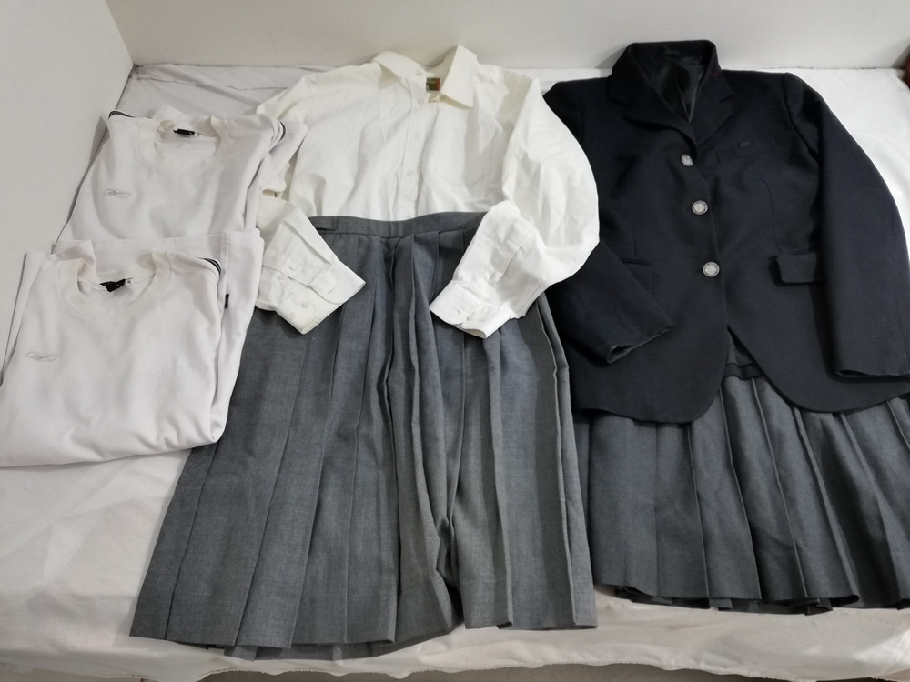 すべてに使用感があります。 ジャケット(170Aサイズ)すれ、汚れあり 実寸サイズ 身幅:約50cm 着丈:約63cm スカート夏(W66x57)すれあり 実寸サイズ ウエスト:約68cm スカート丈;約57cm スカート冬(W75x60)すれあり 実寸サイズ ウエスト:約76cm スカート丈:約59cm ブラウス長袖 13サイズ すれ、汚れ、黄ばみあり 体操服 半袖 Mサイズx2枚 すれ、汚れあり 中古品ですので、細かい点が気になる方はご入札をお控えください。 ◆ゆうパック80サイズ |