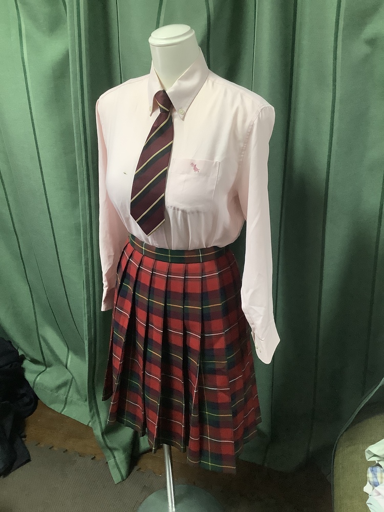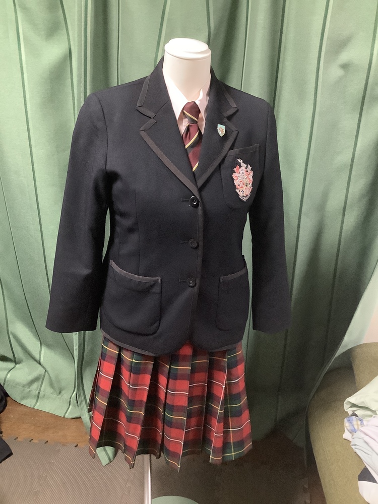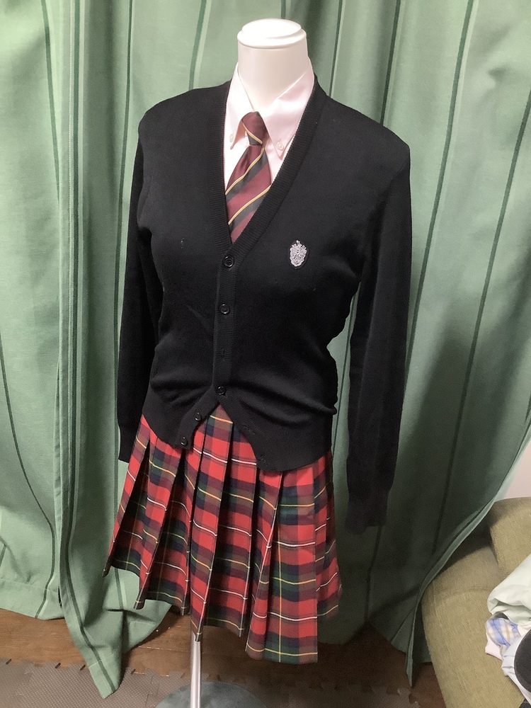 卒業生から直接譲ってもらいました。 3年間着用したものですので、それなりの傷みや汚れが ありますが、中古品としては良好です。 ※ブラウスの右胸に黒染み、カーディガンのボタンが1個欠損しています。