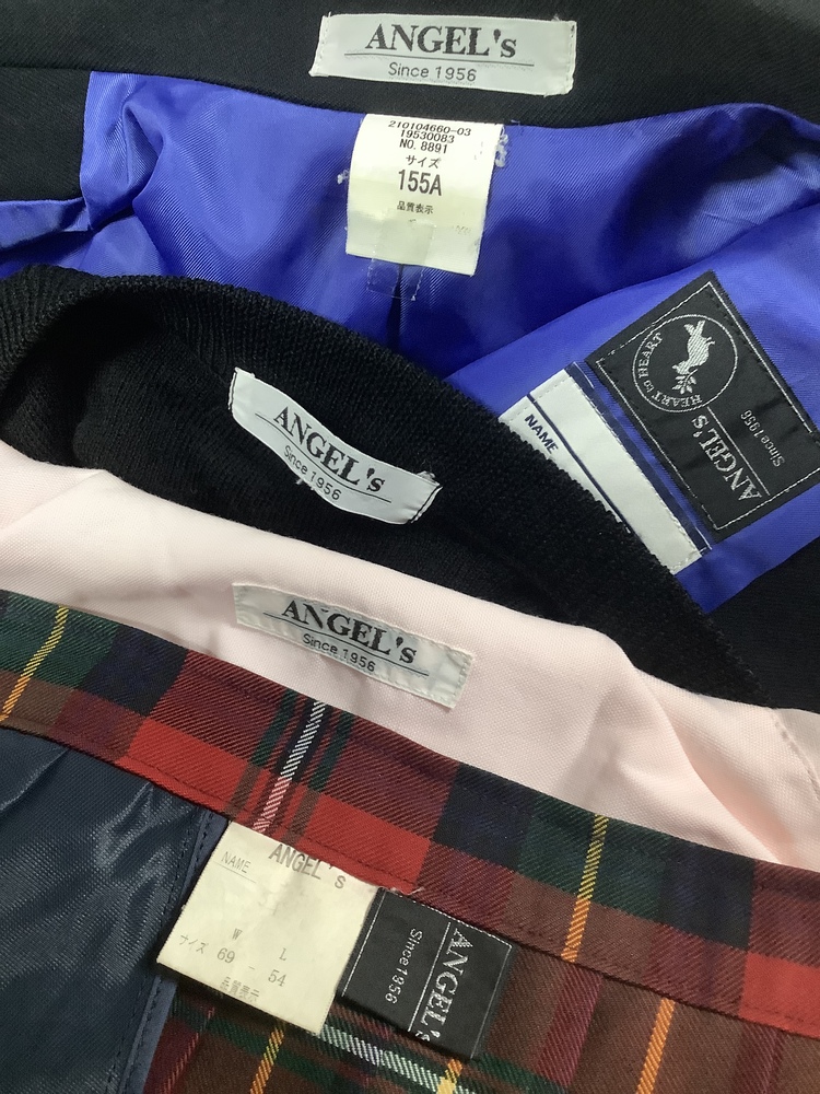 サイズ ブレザー(155A) 肩幅 38 バスト 42 丈 63 ブラウス 肩幅 41 バスト 44 丈 57 スカート ウエスト 33---35(アジャスター付き) 丈 54 カーディガン 肩幅 46 バスト 47 丈 56