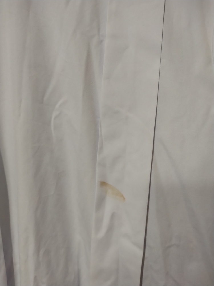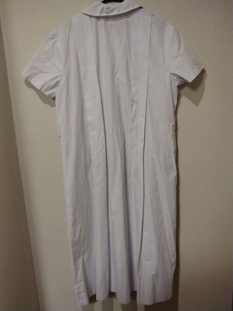 首元のくりにほつれがあり、片方の襟のボタンを閉じた時に真正面によれができます。(写真参照) 日常生活で着用していたため、神経質かつ素人自宅保存にご理解ない方はご購入をお控えください。