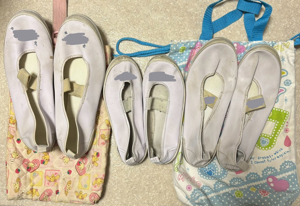 上靴 3人分 サイズ ピンクの袋 24 白・青の袋 22 袋なし 18.5 記名あり フルネームもあり ノークレーム・ノーリターンでよろしくお願いします。 長期保管品の為、ゴムや布地の劣化、擦り傷、汚れ等ある場合がございますのでご了承ください。 |