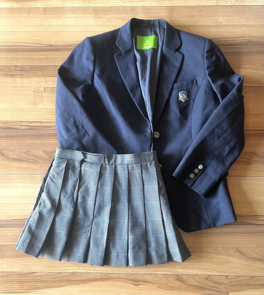 京都福知山淑徳高校のブレザーと 他校の冬スカートです。 サイズは幅50センチ、丈63センチです。 スカートはウエスト66センチ、丈34センチです。 衣類表記にて発送致します。 郵便局留め、日時指定可能です。 |