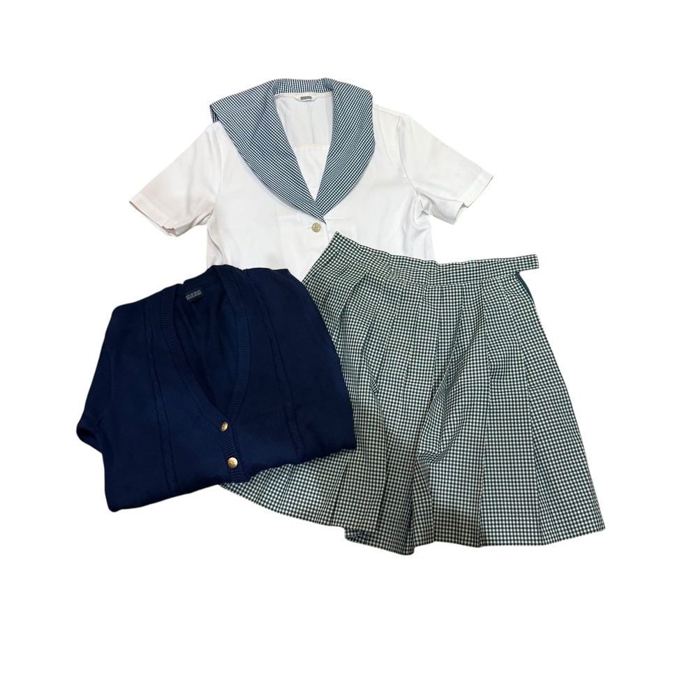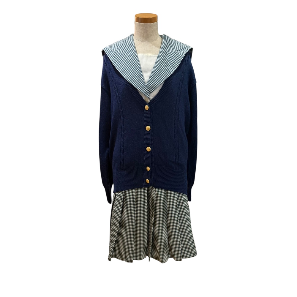 新規の方の入札で落札後、御連絡が一切ないケースが非常に多いので新規の方は入札しないでください。 新規の方、ご入札の際、必ず御連絡下さい。 それ以外の新規の方の入札は削除させて頂きます。 最近、御連絡無い方が多いので御理解の程よろしくお願い申し上げます。 画像で判断が難しい場合は質問にて御連絡頂きますと幸いです。 スカートは総丈のサイズを記載しております。 また御返品等は承れません。 同梱は可能です。 また郵便局留めにも対応させて頂いております。 ★岡山県私立就実高等学校の制服です。 カーディガン、セーラーブラウス、スカートの3点です。 ★ブランド HANAE MORI ★状態 スカートに小さなシミが1箇所御座いますが全体的に綺麗なコンディションです。 ★サイズ ・カーディガン Lサイズ 身幅 約 49p 着丈 約 59p 肩幅 約 43p 袖丈 約 53p ・半袖セーラーブラウス 165A 身幅 約 48p 着丈 約 51p 肩幅 約 42p 袖丈 約 23p ・スカート ウエスト 約 70p 総丈 約 52p