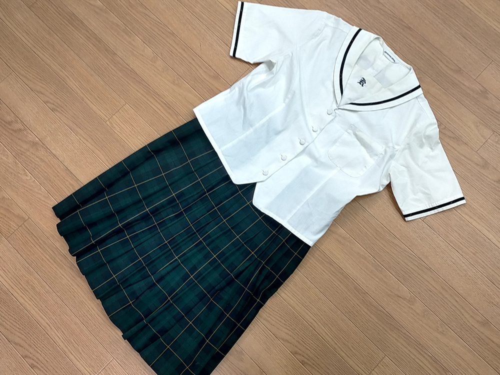 金光大阪高校 中学 夏服、スカート上下セットです ブラウス 肩幅約39cm 丈 約48cm 夏スカート ウエスト約34cm 丈 約56cm 保管シワはご容赦ください。 状態は画像でご確認宜しくお願い致します。 発送はゆうパック60サイズのみの発送になります。 |