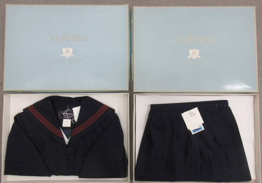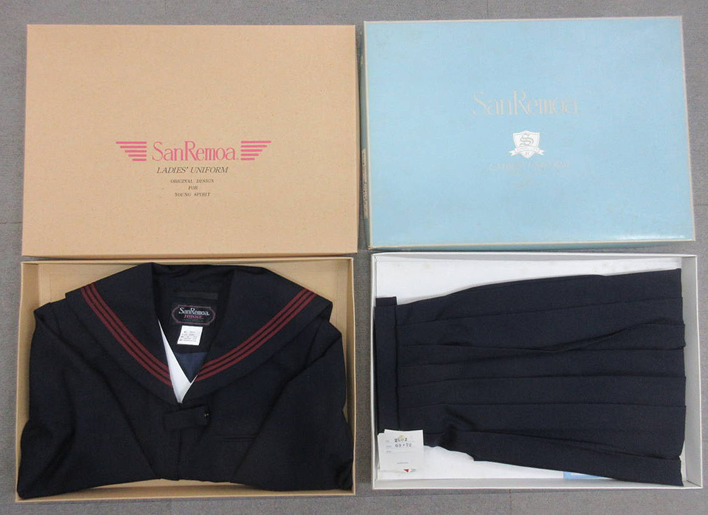■青森県五戸町立五戸中学校指定の女子制服(セーラー服・前開きタイプとスカートの上下セット)です。 未使用新品(メーカー元箱あり)ですが、洋品店倉庫で長期保管品の為、経年による汚れ・シミ・やけ等あったり、倉庫臭・芳香剤臭等ある場合があります。 濃紺の生地で、エンジ3本線です。 セーラー服:毛50%+ポリエステル50% スカート:毛50%+ポリエステル50% ■下記2セットありますので、ご落札後、ご希望のセットをお知らせください。 落札価格x数量のお値段で複数お取引も可能です。 (1)150Aサイズ 着丈43cm-肩幅36cm-身幅43cm-袖丈51cm ウエスト60cm-丈69cmと記載あるが実際は60cm-60cm 残り1 (2)155Bサイズ 着丈45cm-肩幅39cm-身幅50cm-袖丈53cm ウエスト69cm-丈69cm 残り1 ■発送方法 ・定型外普通郵便(箱廃棄) ・レターパックプラス(箱廃棄) ・ゆうパック(箱入り100サイズ、箱廃棄60サイズ) ・ヤマト宅急便(箱入り100サイズ、箱廃棄60サイズ) ※各東京発です。 ■ご注意事項 ・衣服として身に付けるという商品の性質上、サイズ違いであってもノークレームノーリターンでお願いします。 ・そのため、サイズは慎重にご検討ください。 ・素人採寸のため、cmの微差はご容赦ください。 ・未使用新品ですが洋品店の長期保管品ですので、経年に関することや、シミ、ホコリの付着など、ご了承ください。 ・箱は上下とも水色箱です。画像にあるベージュ箱は過去の在庫です。無視してください。 ・制服は状態良好ですが、箱は傷み、破れあります。あくまでおまけですのでご了承ください。 ・箱はSanRemoaブランドのものですが、箱の商品記載欄には店による書き込みがあり、ペンやシールでの記載修正、他校の箱流用などありますがご了承ください。 ・他サイトでも出品中です。ご落札タイミングにより完売していましたらご了承ください。 |