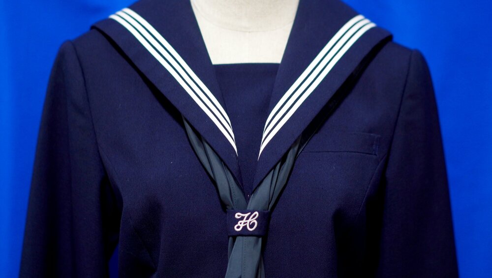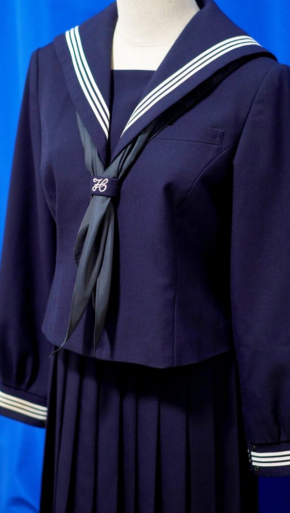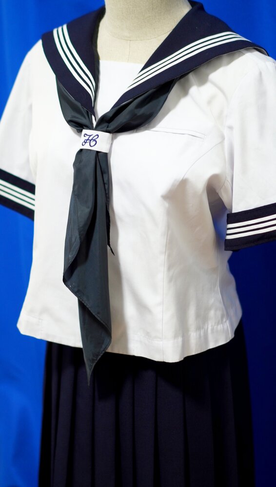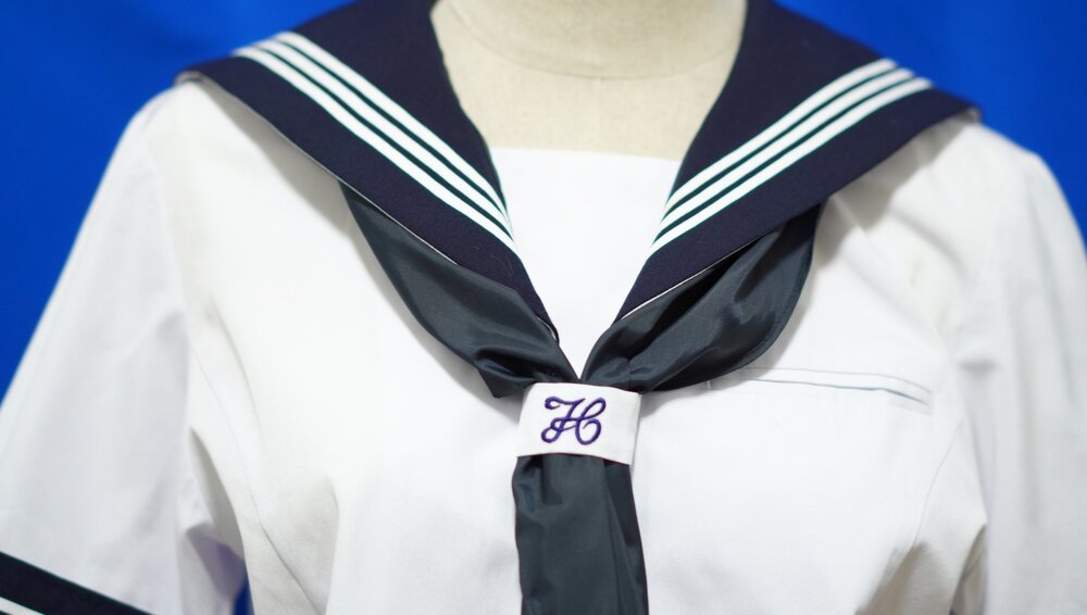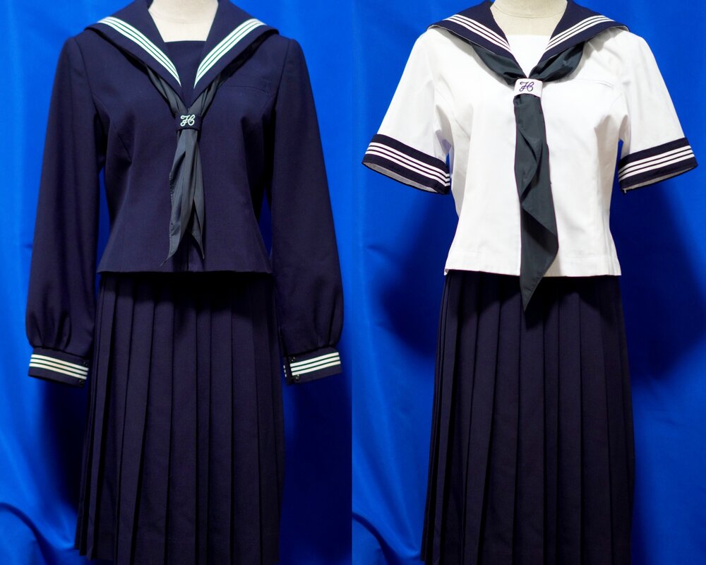 昔ながらのセーラー服で冬服は濃紺で夏服は白い半袖セーラーになります。