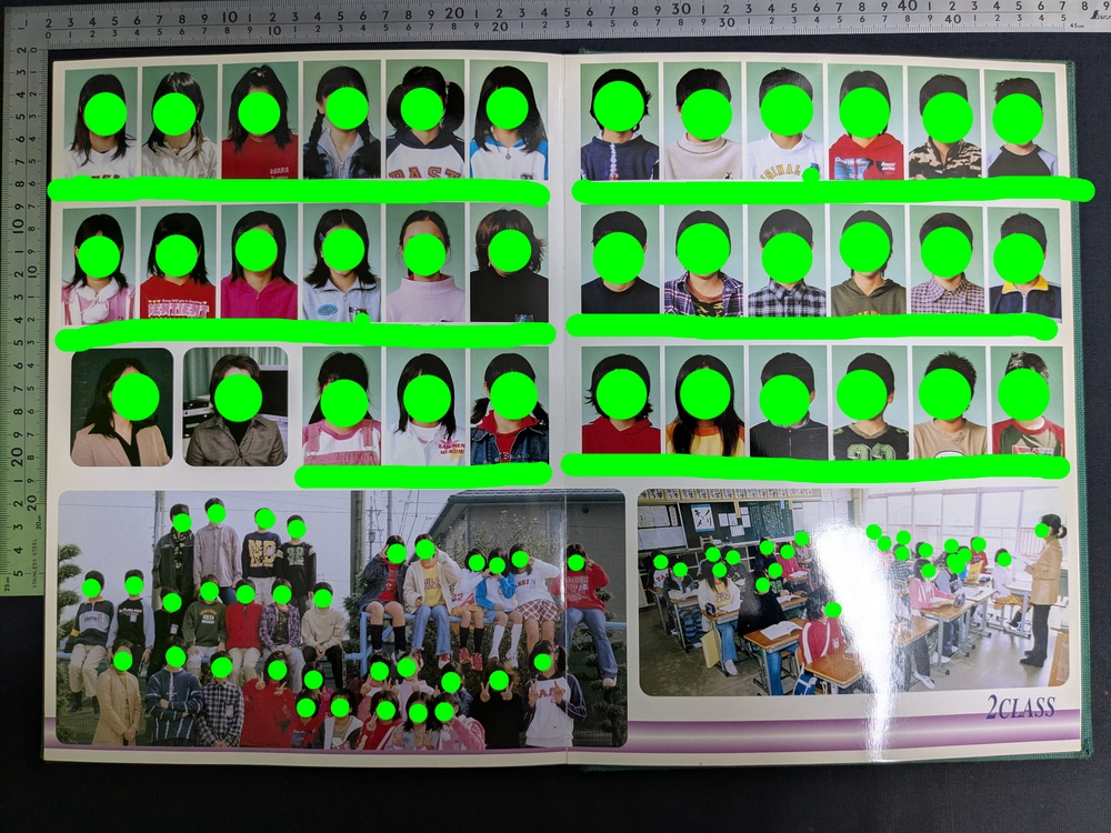 写真はフルカラーです。 冊子後半は卒業文集です。 表紙は布張りです。表表紙上端、前小口下角、背表紙中央付近に布部分の小抉れがあります。表表紙箔押し部分箔の削れがあります。全体に少々毛羽立ち気味てす。ヤケがあります。