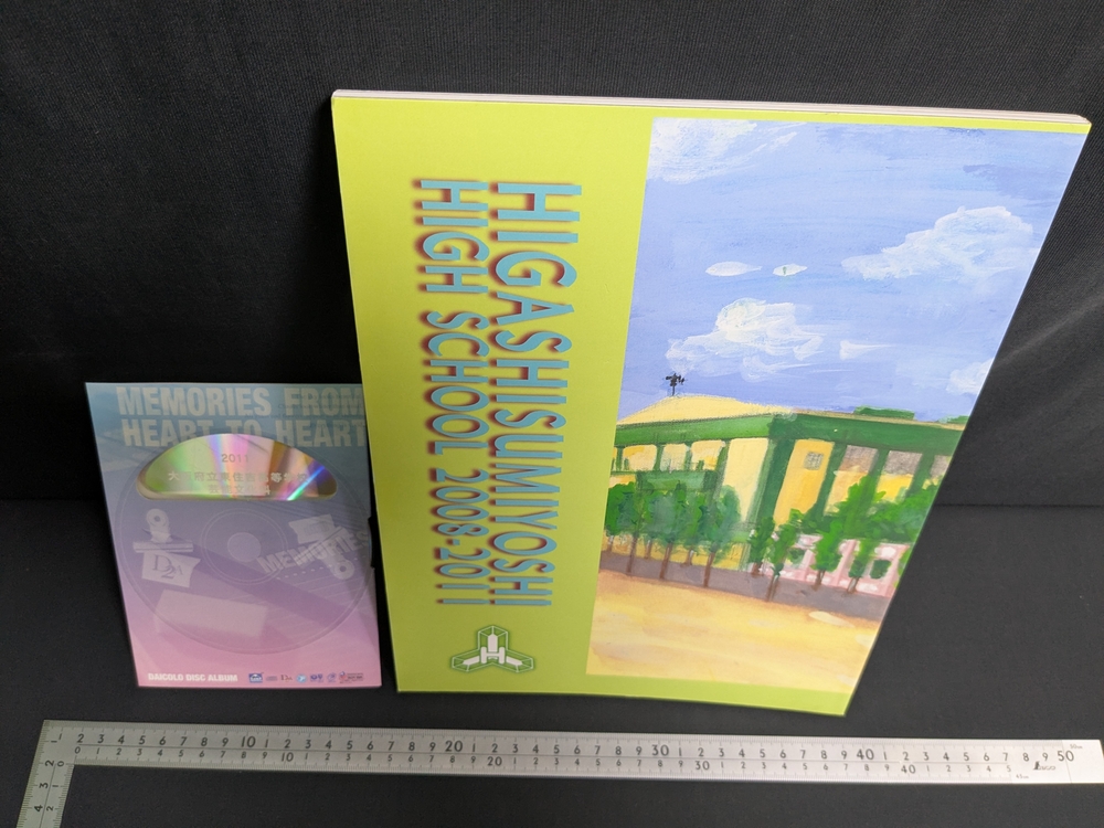PC読み込み専用CD-ROM付きです。700枚超の写真画像(体育祭、修学旅行、日常、発表会などの様子)が収められております。ダイコロ株式会社による電子卒業アルバムD2Aという物のようです。ディスクには専用再生用ソフトも収められておりました。Win、Mac対応とのことですが、当時の環境のものであることにご注意下さい。jpgファイルで収められておりましたので、専用ソフトが動作しなくとも写真画像は見ることができます。商品画像よりも画質は良いです(横長のもので800x533ピクセル)。 写真はフルカラーです。 商品画像4枚目までが紙のアルバムの写真、それ以降が電子アルバムの写真の一部を4枚まとめて1画像にしたものです。紙の方は芸能文化科のみで頁数も少ないです。電子の方はそれよりも多い人数が写っております。おそらく学年全員です。個人写真につきましては、紙の方にのみ掲載されております。 表紙は厚紙製です。スレ、キズがあります。表表紙右下角あたり汚れがあります。
