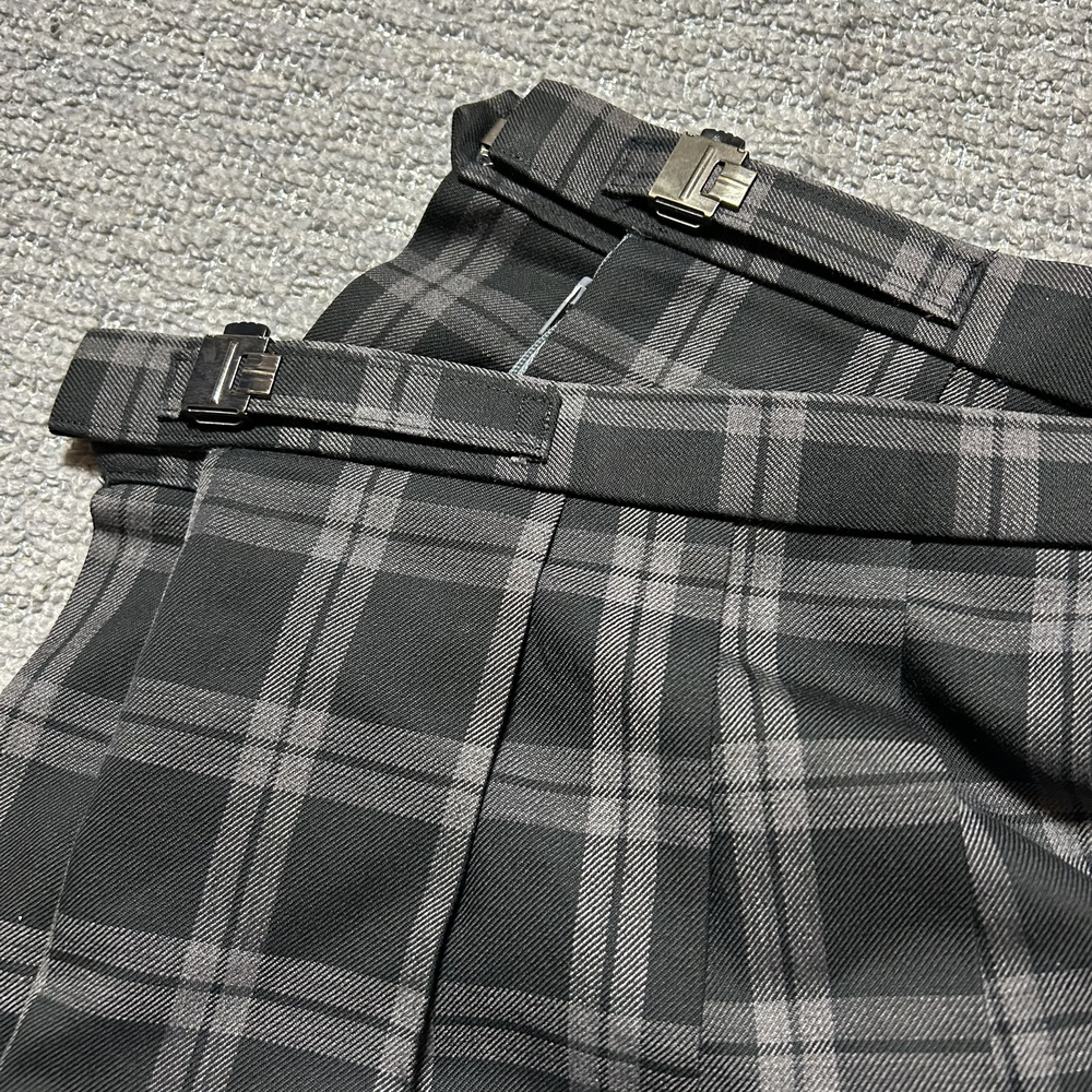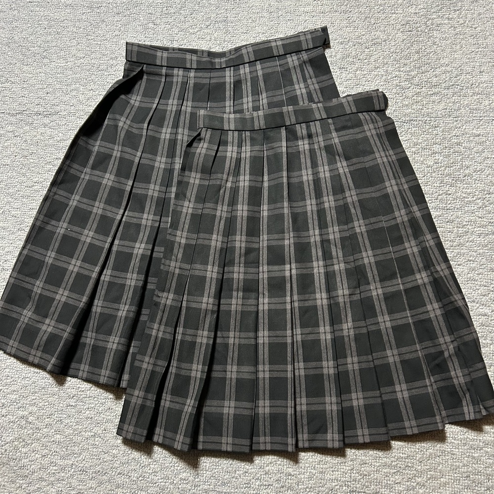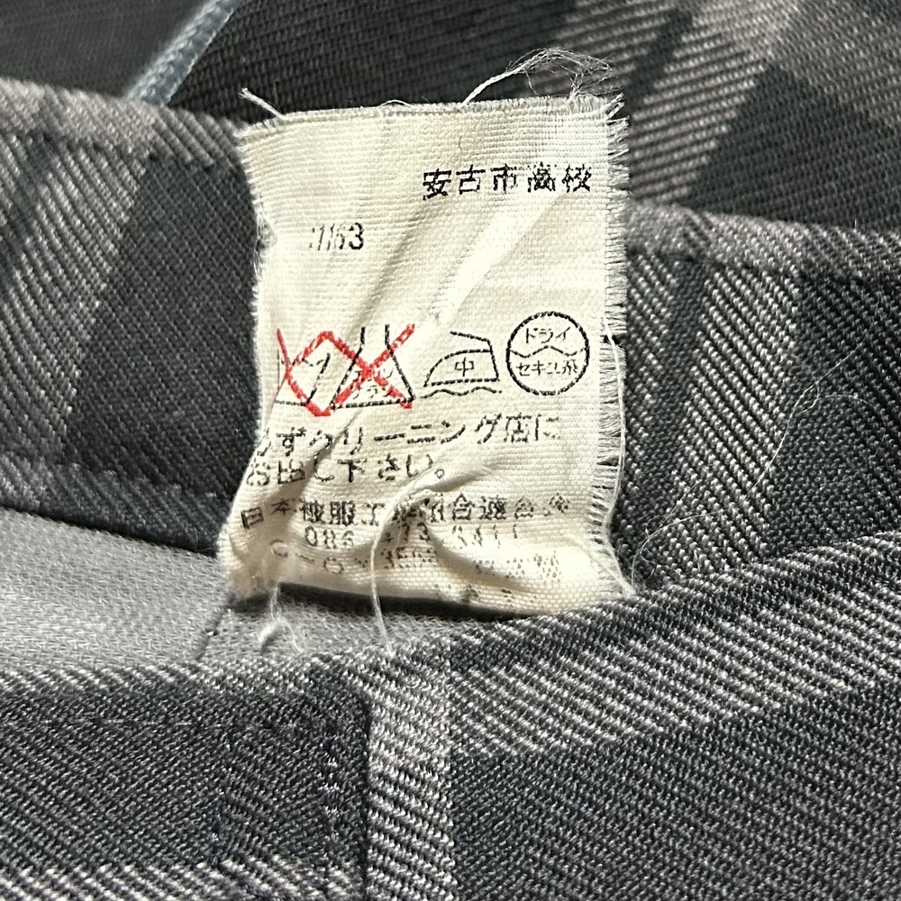 安古市高校 制服 スカート 2枚 スカート裾裏にマークプリントあります @ ウエスト 63p(調節可能) スカート丈 ベルト下56p ネームタグに名前記載あります A ウエスト 57p(調節可能) スカート丈 ベルト下52p いずれも目立つような汚れや傷等のダメージはありませんが、てかり等の若干の使用感はあるかと思います |
