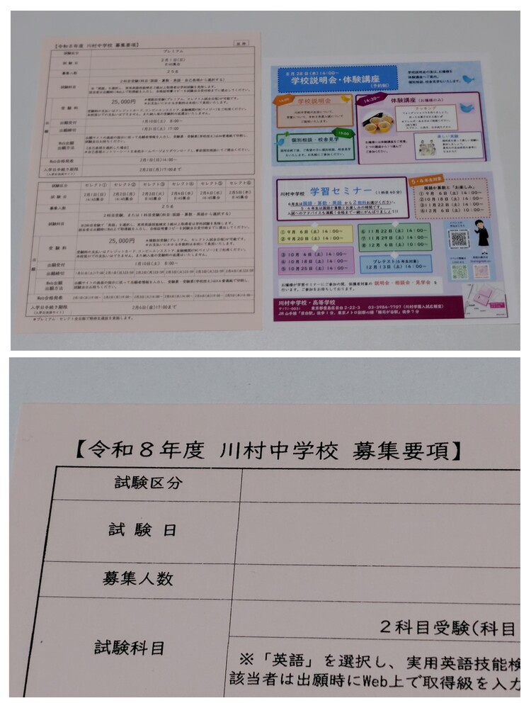 ※スマホでご覧の方は「Read More」を押すと商品説明が全文表示されます。 【お知らせ】 これから随時、来年度向けのパンフレットを出品させていただきます。 中には、限定のグッズもございます。 《セーラー祭り 開催中!!》 セーラー服のパンフレットを毎週出品。 第5週目からのおすすめは『東日本セーラー』です。 東日本中心のセーラーを集めました。 新しいセーラーに出会えるチャンスです! 順次出品していきますので、お楽しみに☆ 『西日本』のセーラー以外もいくつか新規出品あります。 『白百合』シリーズがアンコール出品☆ さらに、リクエスト出品もあります☆ また、引き続き今までの人気セーラーや、 セーラー以外の人気商品もアンコール再出品します。 出品の終了日時は、毎週土曜日の夜9時です。 出品商品は、「新着商品」からはすべて確認できませんので ぜひ、定期的に出品中商品リストをチェックしてみてくださいね。 ※現在出品中の商品はコチラ https://seifuku-ichiba.com/search.cgi?acc=sell_list&sid=1620050768 ※商品説明欄の一番下にも現在出品中の商品リンクを張ってありますので、そこからもご覧いただけます。 −−−−−−−−−−−−−−−−−−−−−−−−−−−−−−−−−−−−−−−−−− 商品に興味をもっていただき、ありがとうございます。 以下をお読みいただき、入札をお待ちしています。 《セーラー祭り☆開催中》 東京都の私立女子校 川村中学高等学校(中学用)の最新パンフレット(2026年度版)【封筒付き】 です。 ※こちらは、中学校の専用封筒と、中学校の募集要項がセットです。 川村中学高等学校の制服は、創業1925年(大正14年)からほとんど変わらないデザインで、セーラー服の襟、カフス、袖にデザインされた3本ラインが最大の特徴です。 この3本ラインは「川」の字を表しており、川村学園のトレードマークです。 冬服は紺のセーラー服に紺のスカート(中高でデザイン違い)、夏服は白地のセーラー服に紺のスカートが基本で、それぞれ紺・ブルーのネクタイがアクセントになっています。 パンフレットの内容 ・学校案内 1冊 ・募集要項(中学校) 1冊 ・学校専用封筒(中学校) 1枚 ○状態 新品 状態はとても綺麗です。 制服紹介、部活動紹介の掲載あります。 ○発送方法、送料について ・普通郵便 (140円〜750円,重さにより異なります。1sまで取り扱い可) ・ゆうメール (190円〜380円,重さにより異なります。1sまで取り扱い可) ※こちらは荷物の追跡はありません。 ・レターパックライト (430円) ・レターパックプラス (600円) ・ゆうパック (700円〜,梱包したサイズと地域により送料が異なります) ※荷物の追跡はあります。 ※落札点数が多い場合は、こちらはとても便利です。 ※ゆうパックは、持ち込み割引-120円を適用した料金です。 ※ゆうパックは、配達の日時指定できます。ご希望の場合はご連絡下さい。 ※郵便局留めできます。 その他、ご希望の発送方法(クロネコヤマト宅急便など)がありましたら 可能な限り承りますので、落札時にご連絡下さい。 〇落札連絡時のお願い 【落札連絡】時に、ご希望の発送方法をお知らせください。 送料をお調べして送料連絡します。 ※同梱可能です。 他の商品を複数落札された場合、同梱可能です。 落札時に【同梱の手続き】をしてご連絡下さい。 同梱することで落札者様の送料のご負担が減りますので、ぜひご利用ください。 気持ちの良いお取引を心がけていきます。 どうぞよろしくお願い致します。 ※評価が悪い人、または取引に不安になる方は入札、落札を取り消しします。 イタズラはやめてください。 ※新規の方は、コメント欄に【購入意思】をひとことお知らせください。 ※現在、出品中のほかの商品はこちらのリンクから☆どうぞ見てくださいね! https://seifuku-ichiba.com/search.cgi?acc=sell_list&sid=1620050768 |