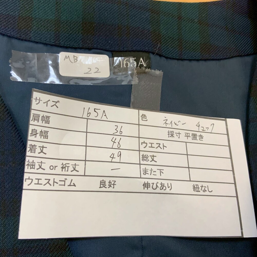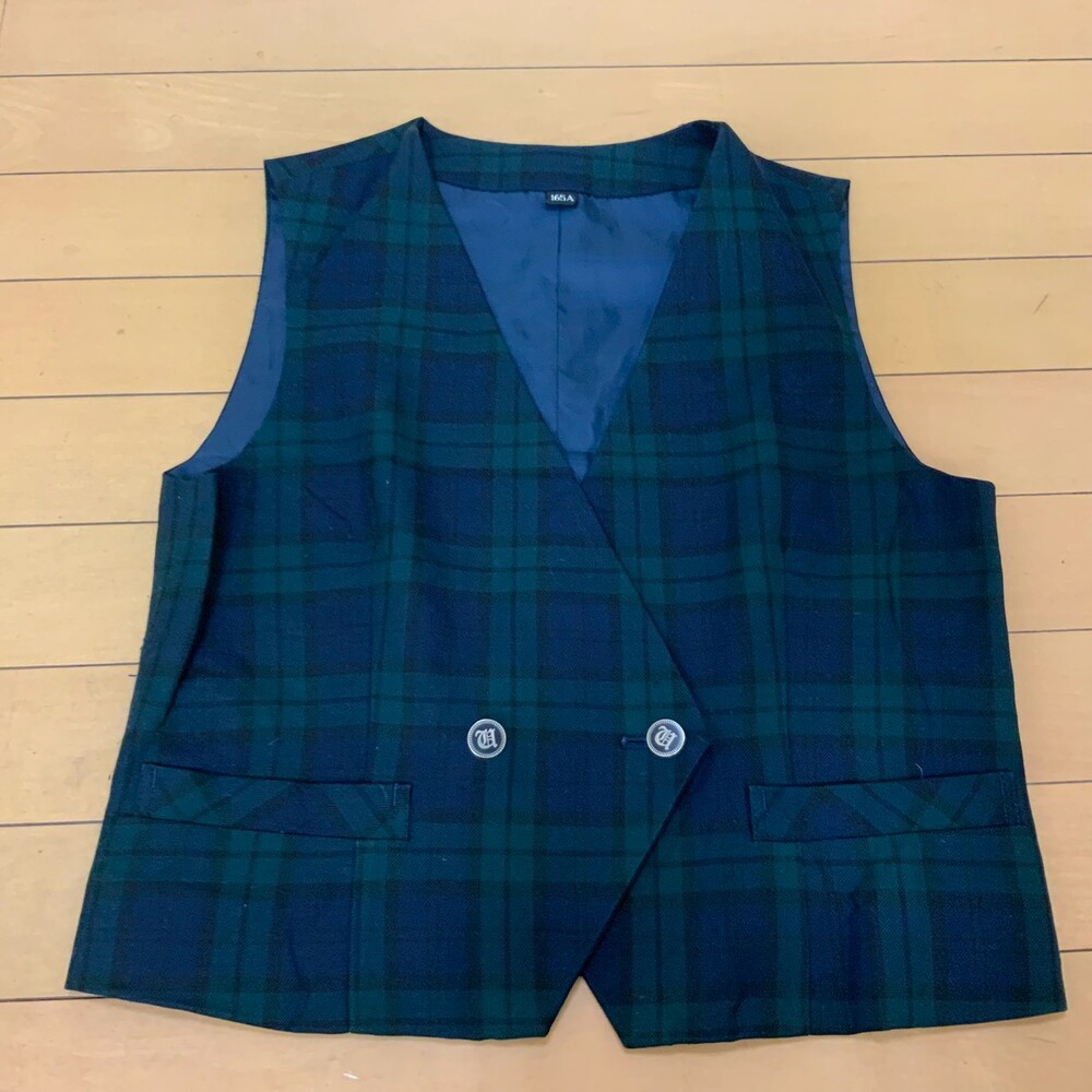 [不明] MB22 制服 スクール ベスト グリーンネイビーチェック 165A 不明
