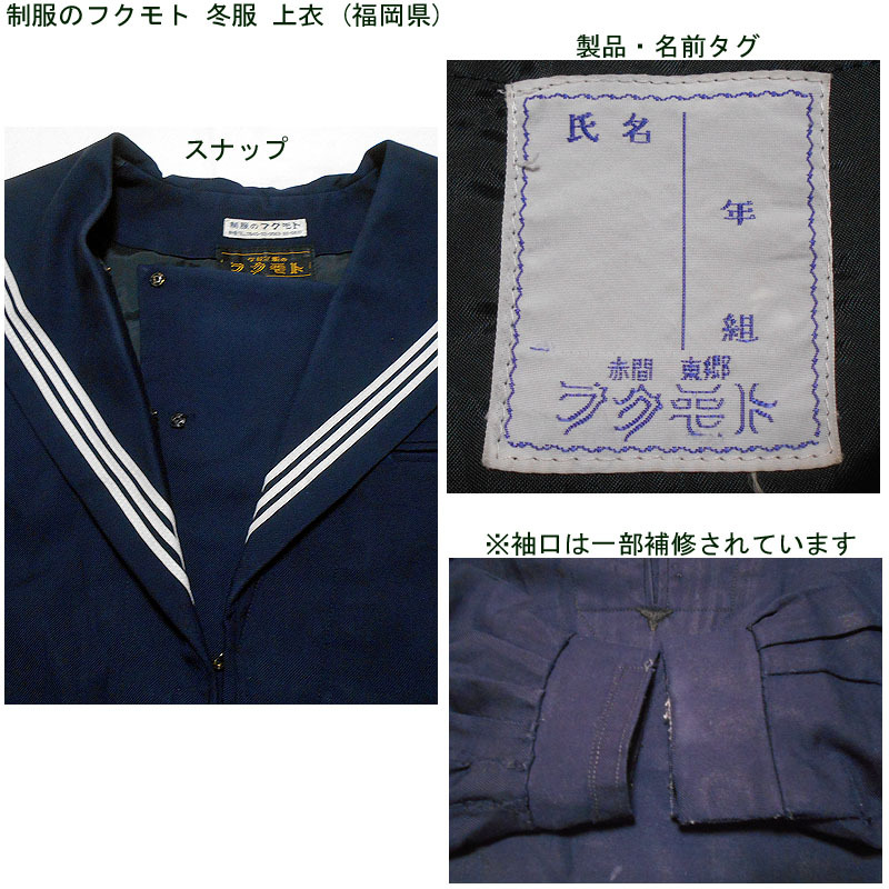 福岡県の冬服セーラー服とジャンパースカートの2点セットです。 学校名は不明です。 宗像市の学校の制服で、「制服のフクモト製」になります。 スカート丈が76cmになりますので、ロング丈になります。 袖口は一部補修されていますのでご了承ください。 セーラースカーフ、およびジャンパースカートのベルトは欠品です。 大きめの制服になりますが、サイズは不明ですので、商品説明で確認してください。 発送はヤマト運輸で80サイズを予定しています。 ●商品の説明 (1)上衣 メーカー:制服のフクモト 色/タイプ:紺地紺襟白3線長袖被り(関西襟) サイズ :- 胸周り:110cm 肩幅:43cm 袖丈:58cm 着丈:47cm 裾周り:108cm (2)ジャンパースカート メーカー:制服のフクモト 色 :紺 サイズ :- ウエスト:90cm スカート丈(ベルト下):76cm 胸廻り:96cm 総丈:111cm 箱ひだ 24本 ※素人採寸ですので、多少の誤差はご了承ください。 ●注意事項 (1)ガイドラインに則り、ホームクリーニング済みです。 (2)実際に着用されていた制服ですので、シミ、汚れなどがあります。 (3)折り畳んでで保管していましたので、多少シワがあります。 (4)ノークレーム、ノーリターンでお願いいたします。 (5)スムーズな取引を心がけますが、発送は週末になります。 |