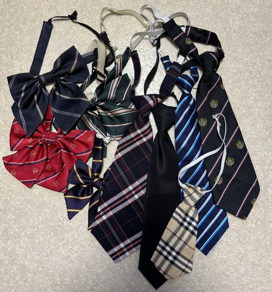 紐リボン 赤1本 セーラーネクタイ 緑2本 青1本 黒ネクタイ 2本 リボン 4つ ネクタイ型 5つ 紐リボン、セーラーネクタイは指定の物あると思いますが、 学校が分かません。 1本記名あり フルネーム リボン、ネクタイ型は指定の物ではありません。 ノークレーム・ノーリターンでよろしくお願いします。 長期保管品の為、ゴムや布地の劣化、擦り傷、汚れ等ある場合がございますのでご了承ください。 |