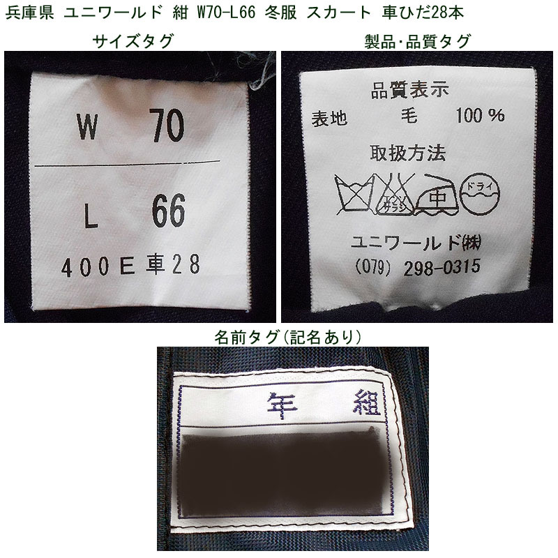 兵庫県のユニワールド製の冬服スカートです。 学校名は不明です。 ●商品の説明 (1)スカート メーカー:ユニワールド 色 :紺 サイズ :W70-L66 ウエスト:62〜68cm(調節可能範囲) スカート丈(ベルト下):62.5cm 車ひだ 28本 ※素人採寸ですので、多少の誤差はご了承ください。 ●注意事項 (1)ガイドラインに則り、ホームクリーニング済みです。 (2)実際に着用されていた制服ですので、シミ、汚れ、色あせなどがあります。 (3)折り畳んで保管していましたので、多少シワがあります。 (4)ノークレーム、ノーリターンでお願いいたします。 (5)スムーズな取引を心がけますが、発送は週末になります。 |