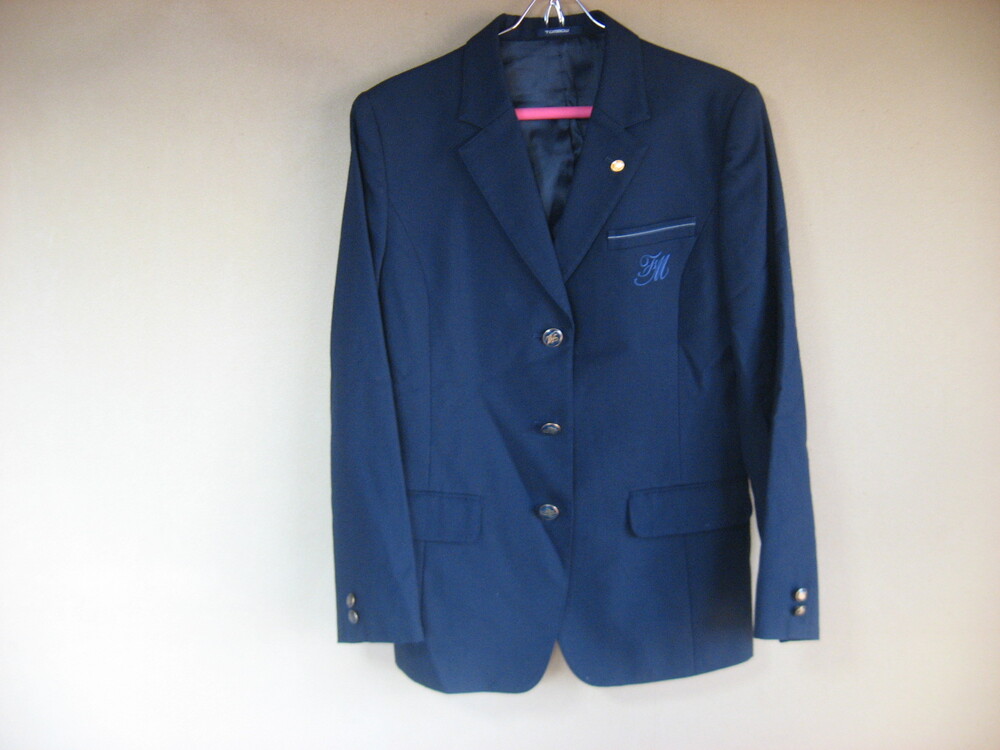サイズ ブレザー L 肩幅44cm 着丈68cm ブラウス L スカート(アジャスター型ホックです)ウエスト75cm 丈54cm 付属品 校章 指定リボン |