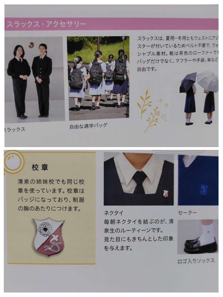 ※スマホでご覧の方は「Read More」を押すと商品説明が全文表示されます。 【お知らせ】 これから随時、来年度向けのパンフレットを出品させていただきます。 中には、限定のグッズもございます。 《年末年始フェア 開催中!!》 第9週目は『年末年始 年越し企画』です。 どんな人気パンフレットと出会えるかお楽しみに☆ もちろん、新規の学校の出品も予定しております。 出品の終了日時は、毎週土曜日の夜9時です。 出品商品は、「新着商品」からはすべて確認できませんので ぜひ、定期的に出品中商品リストをチェックしてみてくださいね。 ※現在出品中の商品はコチラ https://seifuku-ichiba.com/search.cgi?acc=sell_list&sid=1620050768 ※商品説明欄の一番下にも現在出品中の商品リンクを張ってありますので、そこからもご覧いただけます。 −−−−−−−−−−−−−−−−−−−−−−−−−−−−−−−−−−−−−−−−−− 商品に興味をもっていただき、ありがとうございます。 以下をお読みいただき、入札をお待ちしています。 《年末年始フェア☆開催中》 神奈川の私立女子校 清泉女学院中学高等学校の最新パンフレット(2026年度版) です。 清泉女学院中学高等学校の制服は、紺のジャンパースカートとベージュのブラウスが基本の正装で、世界中の姉妹校でも採用される伝統的なデザインが特徴です。 冬はセーターやコート、夏はピンストライプの半袖ブラウス&ジャンパースカート、盛夏にはワンピース型も着用可能で、校章入りの百合のボタンやポケットの刺繍エンブレムがアクセント、茶色の革靴と白ソックス/黒タイツでまとめ、スラックス選択も可能な、気品と機能性を兼ね備えた制服です。 制服の主な特徴