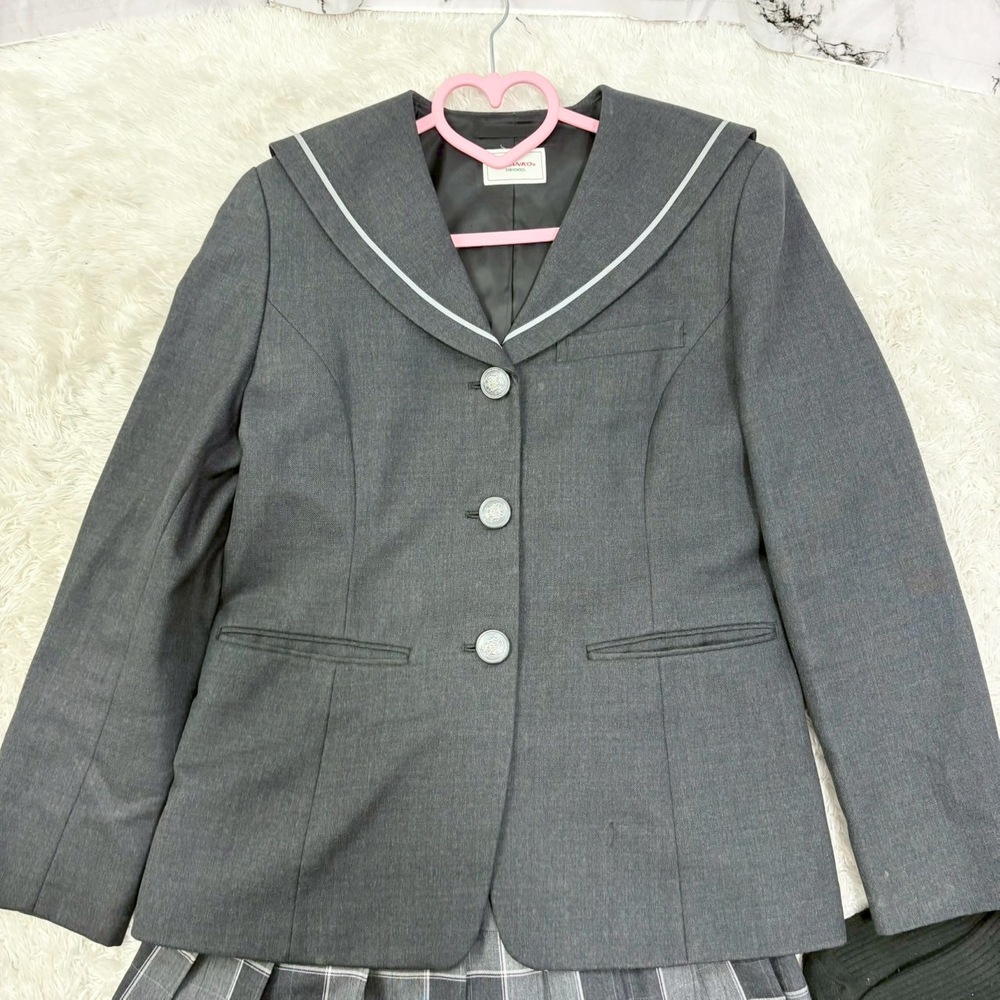【商品説明】 東京都立 葛飾総合高校の女子制服セットの出品です。 グレー系ブレザーにチェック柄プリーツスカートを合わせた、落ち着きと可愛らしさを兼ね備えたデザインです。 制服メーカーは KANKO(カンコー)製で、品質・仕立てともに安心感のある一式です。 【セット内容】 ・冬服ブレザー ・冬用プリーツスカート ・指定ソックス ※写真に写っているものが全てです。 【デザイン・特徴】 ・グレー系ブレザー ・セーラー襟風デザイン(白ライン入り) ・フロントボタン仕様 ・チェック柄プリーツスカート ・スカート裾に刺繍ワンポイントあり ・上品で落ち着いた雰囲気の制服です 【サイズ】 ・サイズ表記:57(タグ確認済み) ※実寸は測定しておりません。 ※制服のため一般的なレディースサイズとは異なります。 【状態】 ・中古品 ・目立つ破れや大きなダメージなし ・使用に伴うスレ、シワあり ・全体的にはまだ着用可能なコンディションです ※状態は写真にてご確認ください。 【おすすめ用途】 ・制服コレクション ・資料、展示用途 ・舞台衣装、撮影用 ・制服ファンの方 【注意事項】 ・卒業生等から正規に譲り受けた中古制服です ・なりすましや不正使用を目的とした販売ではありません ・ご購入後の使用目的について当方は責任を負いかねます ・返品、返金不可 【発送について】 ・着払い発送となります ・基本的にヤマト運輸にて発送予定です ・丁寧に梱包いたします ・衣類のため畳みジワが生じる場合があります #SKT1206 |