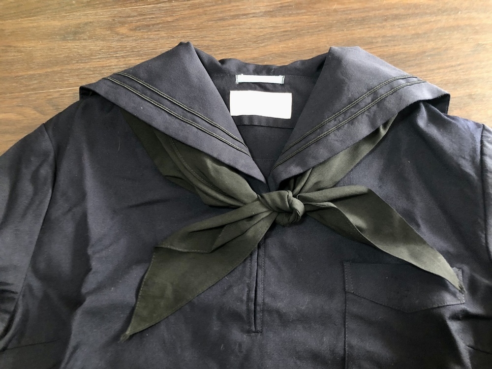 | 質問失礼いたします。こちらスカーフは指定品でしょうか?また、もしそうでしたら、タグのお写真を見せていただけないでしょうか? |