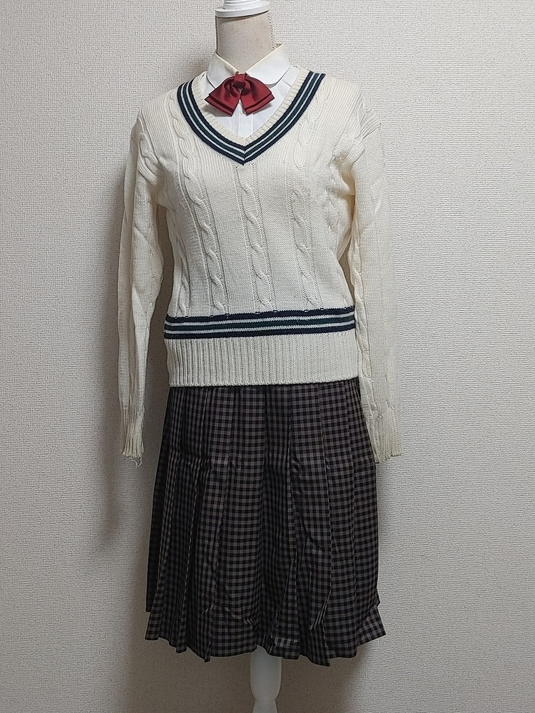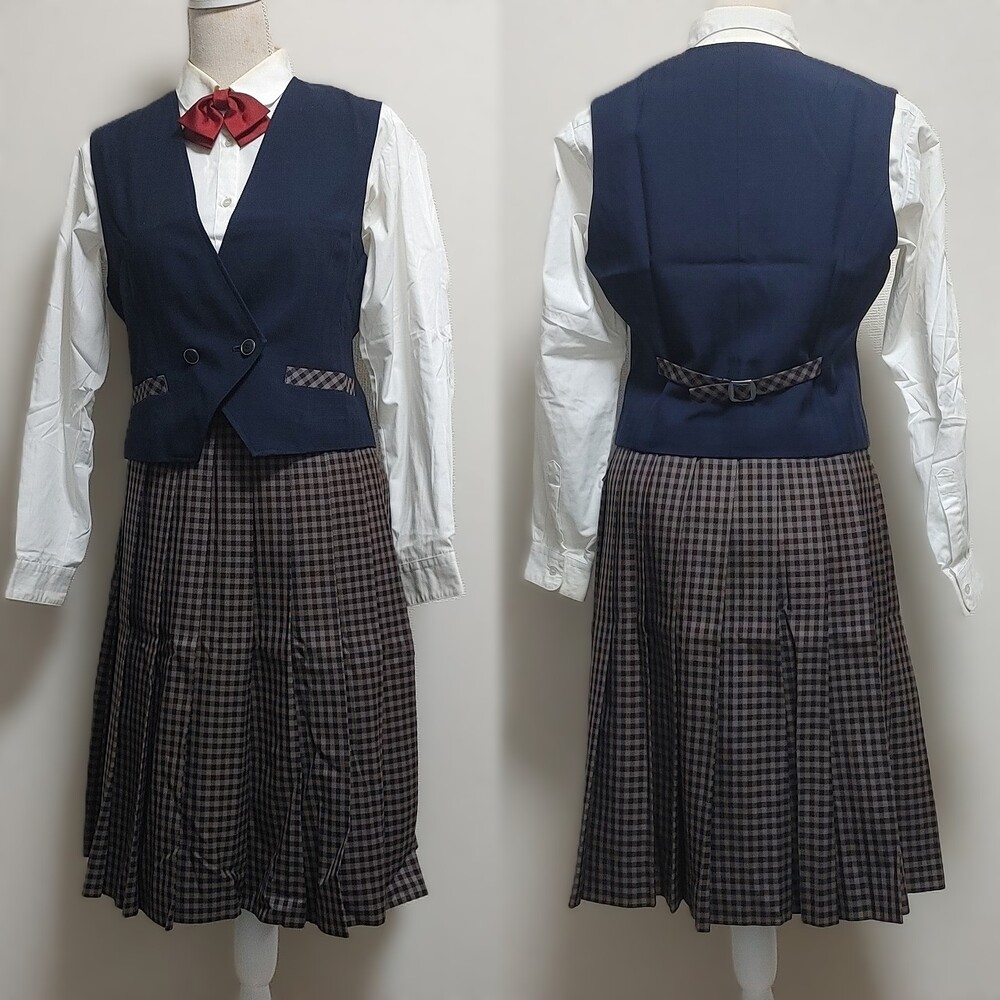 ご覧いただきありがとうございます。 写真掲載商品のご提供となります。 以下商品内容となります。 出品内容 岡山県 津山商業高等学校 夏・冬制服セット @ブレザー サイズ:LL 肩幅:42cm 身幅:50cm 着丈:59cm 袖丈:61cm Aベスト サイズ:LL 肩幅:36cm 身幅:45cm 着丈:46cm Bブラウス(長袖) サイズ:タグ無し 肩幅:44cm 身幅:54cm 着丈:70cm 袖丈:57cm C冬服スカート ウエスト72cm スカート丈60cm ※アジャスター付き D夏セーラー服 サイズ:タグ無し 肩幅:42cm 身幅:50cm 着丈:49cm 袖丈:23cm E夏服スカート ウエスト72cm スカート丈60cm ※アジャスター付き E指定リボン 3種 冬:2 夏:1 F指定セーター サイズ:S 以上、7点の出品です。 全て指定品になります。 ※サイズにつきましては若干の誤差はご容赦願います。 出品一覧:https://seifuku-ichiba.com/my_auction.cgi?acc=selling 個人保管のため、たたみ皺等ありますのでご理解いただきますようお願いいたします。 落札後は24時間以内のご連絡、3日以内の入金をお願いいたします。 |