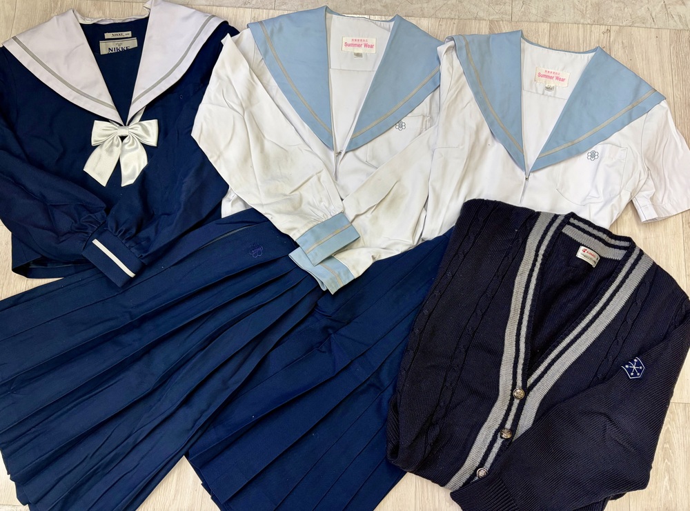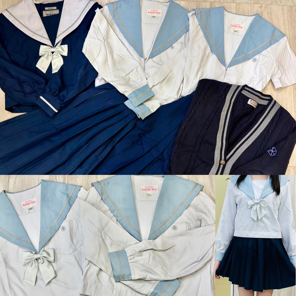西春高校の制服フルセットです。 大人気のセーラー服ですが、昨年度より制服がブレザーに変更になり、長年続いたこの人気のセーラー服も2年後にはなくなります。 貴重な制服になるのでカーディガンもリボンもフルセットで揃っているのはコレクションにもお勧めです。 冬セーラー服 165A 夏セーラー服 165A 合服 165A カーディガン M 冬スカート 平置きでベルト芯の端から端まで36センチ 丈60 夏スカート 平置きでベルト芯の端から端まで64センチ 丈60 アジャスター付きなので調節可能 ※畳シワがありますが、そのまま発送になります。アイロン等でシワはなくなると思いますが、ご了承下さい。 |
