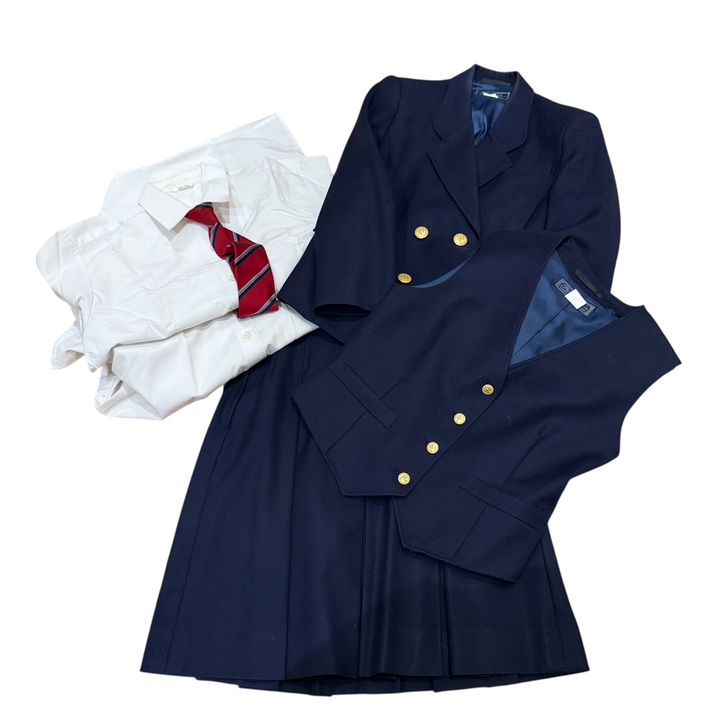 新規の方の入札で落札後、御連絡が一切ないケースが非常に多いので新規の方は入札しないでください。 新規の方、ご入札の際、必ず御連絡下さい。 それ以外の新規の方の入札は削除させて頂きます。 最近、御連絡無い方が多いので御理解の程よろしくお願い申し上げます。 画像で判断が難しい場合は質問にて御連絡頂きますと幸いです。 スカートは総丈のサイズを記載しております。 また御返品等は承れません。 同梱は可能です。 また郵便局留めにも対応させて頂いております。 ★岡山県立倉敷商業高等学校の制服です。 ブレザー、ベスト、長袖ブラウス2点、ネクタイ、スカートの合計6点です。 ★ブランド FUJI YACHT ★状態 ブラウスに少し汚れが御座いますが全体的に綺麗なコンディションです。 ★サイズ ・ジャケット 150A 身幅 約 47p 着丈 約 55p 肩幅 約 39p 袖丈 約 51p ・長袖ブラウス 2点共にMサイズ 身幅 約 48p 着丈 約 66p 肩幅 約 41p 袖丈 約 52p ・ベスト 150A 身幅 約 42p 着丈 約 43p 肩幅 約 33p ・スカート ウエスト 約 60p 総丈 約 53p |