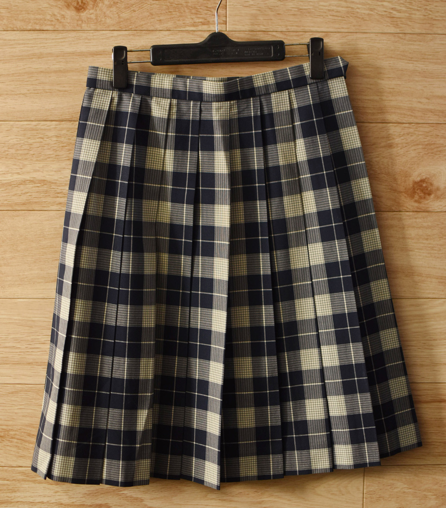 c■良好■女子学生制服 人気チェック柄 夏スカートW66L57■白・グレー・濃紺 不明