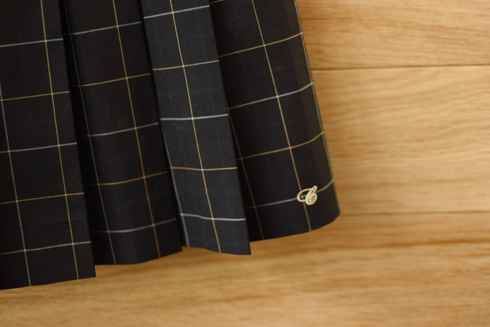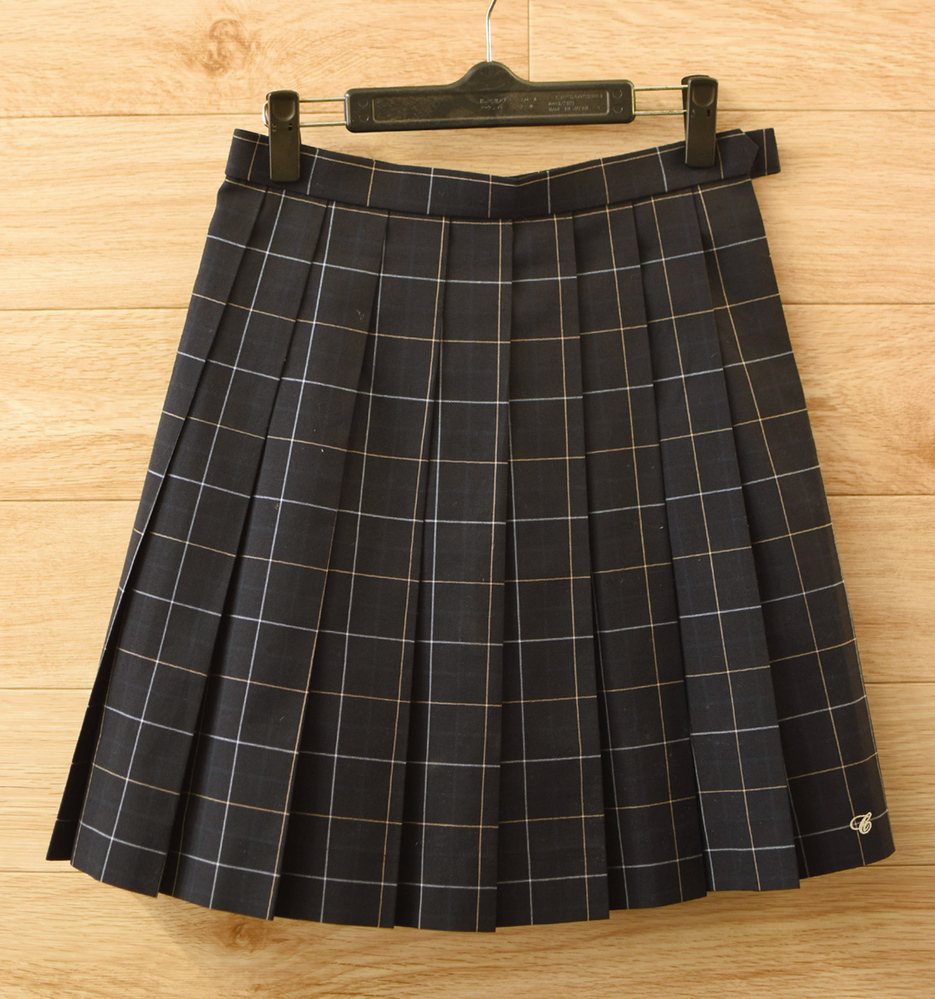 c■美品 校章刺繍付き■女子学生制服 人気チェック柄 夏スカートW63L47■黒 不明