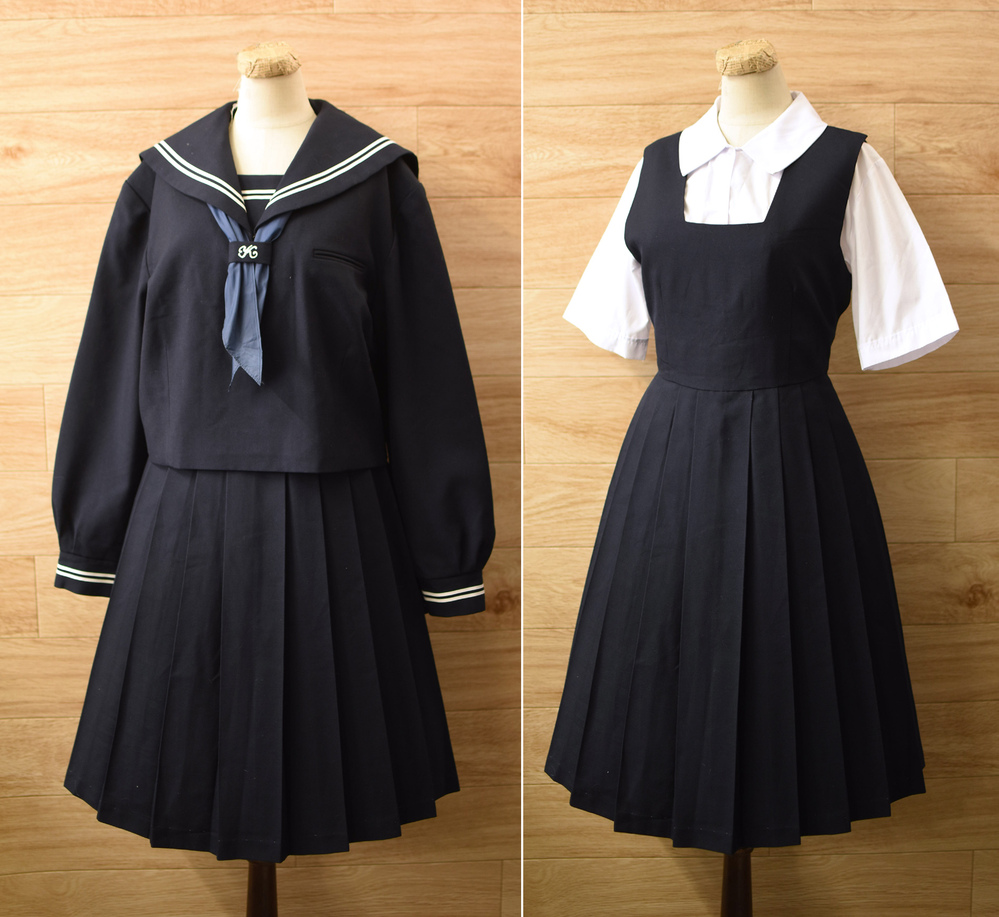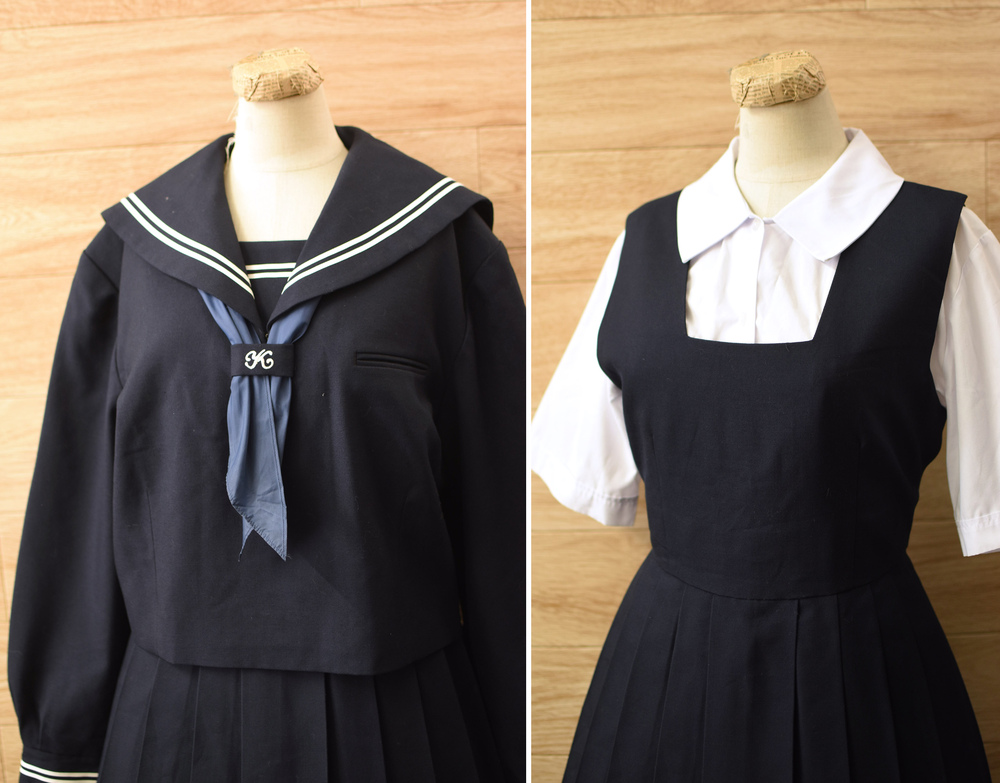 状態は実際に使用されていたものですのでジャンパースカートのベルトが無く、右脇の縫製が2cm程ほつれています。着用感があります。