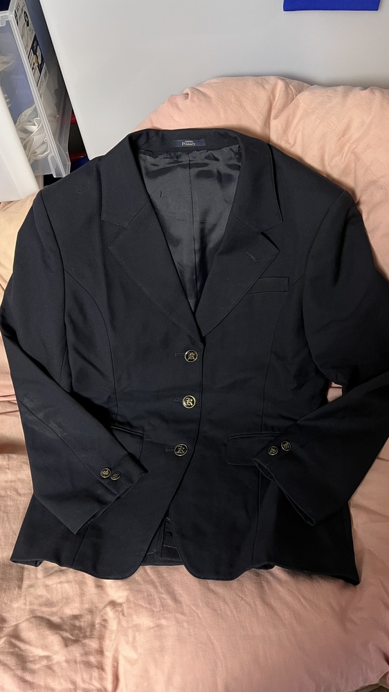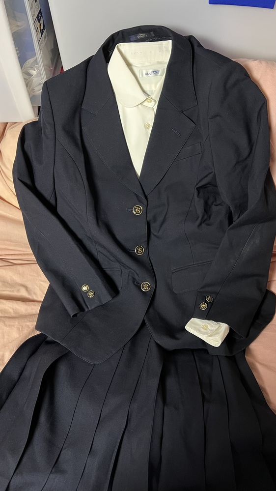 ブレザーの上下セットとシャツの3点です ブレザー サイズ:L 肩幅:43.5cm 着丈:65.0cm 身幅:48.0cm 袖丈:45.0cm 素材:表地 毛70%、ポリエステル30% 裏地 ポリエステル 織:サージ 前開きボタン留め 裏地は紺色 状態:左袖に緑色のペンキのような点の汚れあります。 襟の内側の裏地に伝線あります。右肩の後ろ側に洗剤残りのような汚れあります。 冬スカート サイズ:表記無し ウエスト:64.0cm〜69.0cm 丈:64.5cm 素材:不明、おそらく上着と同じ毛70%、ポリエステル30% 織:サージ 裏地:無し 状態:裾に縫い直しの痕があります。 シャツ サイズ: 肩幅:39.5cm 着丈:57.0cm 身幅:44.0cm 袖丈:48.0cm 素材:綿65%、ポリエステル35% 状態:襟周りに染み抜きクリーニングで落ち切らなかった汗ばみあります。お臍の右下当たりに墨のような黒い点の汚れあります。 支払い方法は @ゆうちょ銀行への銀行振り込み Apaypayのアカウントへpaypayポイントでの支払い BMフリマアプリでの取引(送料と販売手数料10%を上乗せした価格になります) 発送は Aゆうパック80サイズ(ダンボール箱) Cゆうパックおてがる80サイズ(匿名、Mフリマのみ利用可能)(ダンボール箱) Cクロネコヤマトの匿名配送(※LINEで当方と友達登録が必要。宅急便の通常送料+匿名配送代110円) ゆうパックおてがる以外は営業所留めに対応可能です 落札者の方は支払い方法と発送方法の希望を教えてください。発送方法で送料が変動します。 |